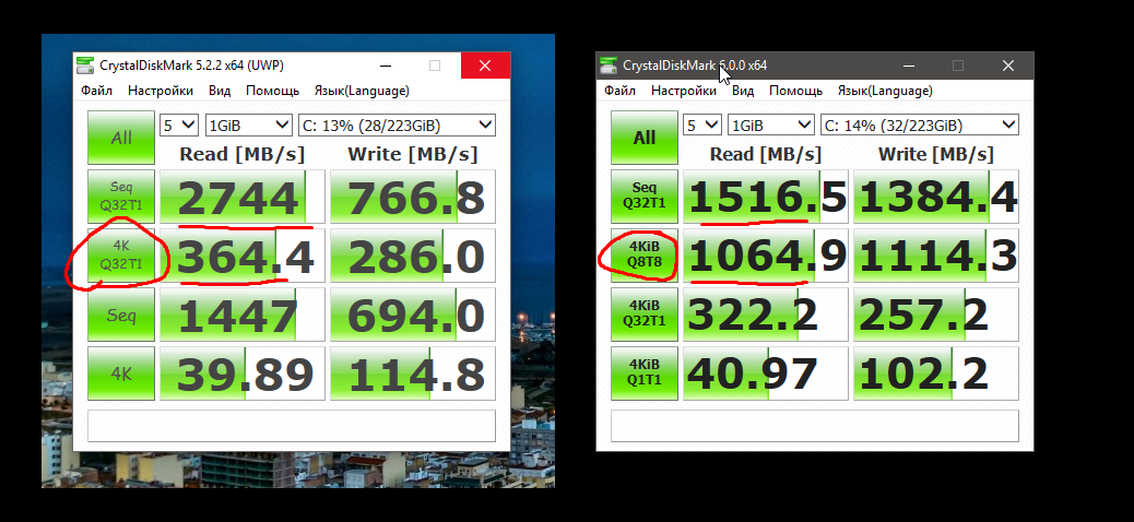 Мать профильная, на ней 2 разъёма m2, вроде оба разъёма PCI Express 3.0 x4, но скорость заметно ниже чем на плате от Асрока. Вопрос, будет ли разница если ssd в другой разъём поставить или нет? Сейчас стоит на задней стороне материнской платы, ибо если спереди ставить, то vega 64 греть будет диск. а на задней стороне платы вентилятор стоит, и SSD обдувает хорошо.