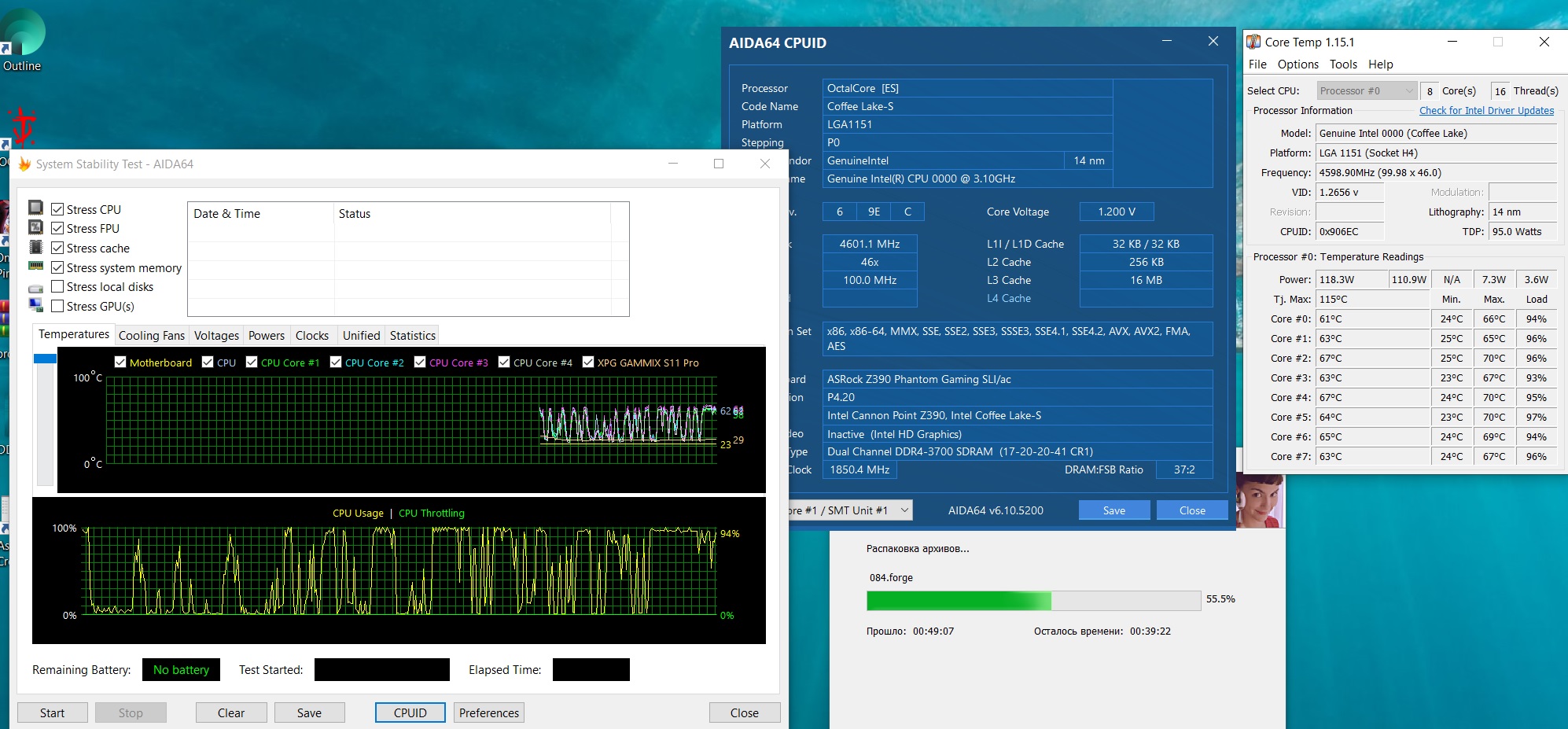 Други, доброго дня. Помогите пожалуйста настроить вольтаж для 8700k на z390 Extreme 4. Bios 4.30, проц скальпирован, память Crucial Ballistix BL16G32C16U4B 16x2. Взял все настройки из шапки, выставил множитель 47 на камень и 43 на кэш. Настройки напряжения пробовал и с "-" оффсетом и в авто - напруга VID улетает за 1,4. К сожалению не силен в нюансах питания процессора - цель найти компромисс между производительностью и напряжением. В идеале хотелось чтобы в простое напруга падала, а в нагрузке оставалсь в рамках приличия. Скрины из HWiNFO64 и прочее сделаю.