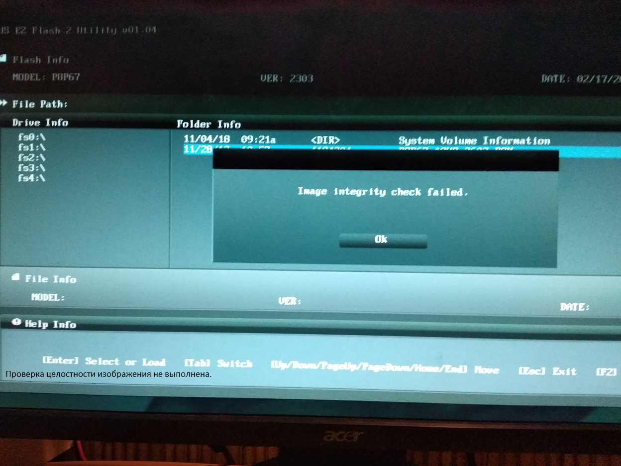 . При попытке обновления через ASUS EZ Flash 2, система ставит только любую 2000 версию.При попытке установить любую 3000 версию пишет " Проверка целостности изображения не выполнена" (гугл переводчик)