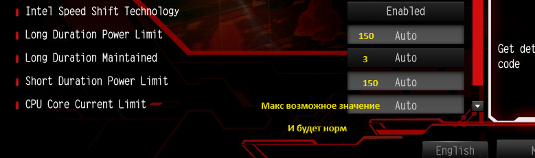 BY_Pashka Спасибо! Пока так сделал, вроде в правой колонке пару пунктов ошибся, поправлю. Напряжение 1.29в. Нужно в биосе что-то делать с лимитами? Видел ты давал совет пользователю с такой же матерью, но скриншот не открывается.. Вроде проц 65 ват жрёт, на 1200 платформе у меня там всё в дефолте стояло.