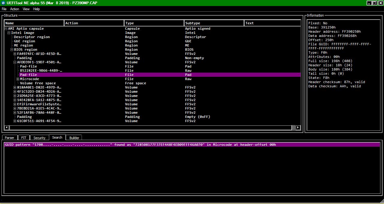 1) В послденее время опять участились жалобы на наличии вируса в пакете UBU, якобы МСЕ,ехе содержит вирус. Поэтому принято решение, что вместо ехе файла теперь будет py исхотдный Пайтона. Чтобы была корректная работа с микодами вам необходимо установить пакет Ptyhon версии 3.7 или выше. А также две библиотеки: - colorama - PLTable Как это сделать уаказано на ГитХабе в репе МСЕ. Вы можете юзать м ехе файл, но скачивать его будете самостоятельно. Если установите Пайтон то у вас появится возможность юзать другие приложения на Пайтон, которых очень много. 2) Все архивы с файлами теперь здесь https://mega.nz/#F!MSRDxSqR!5etS-te7ZqRQX9Zb25es_A 3) На данный момент рекомендуется использовать UEFITool v0.25.0 (и не выше), до выяснения
