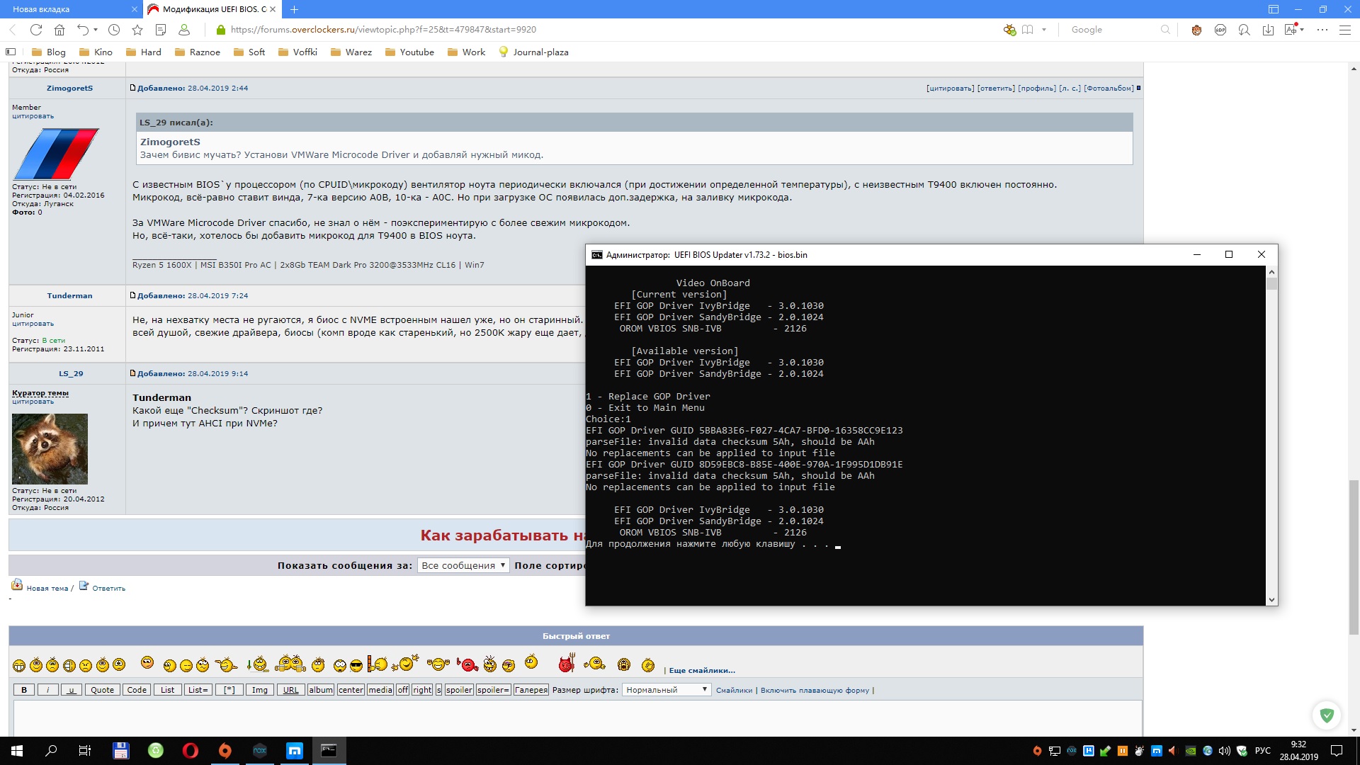Народ, может кто запилить в мой биос поддержку NVME и обновление всего и вся в UBU? Чето и так и сяк пробую, то одна ошибка, то другая. Мать Asrock Z68 Extreme 3 Gen 3. Родной биос https://yadi.sk/d/Wa8lMx_8lIr4Tw. Программатор пришел от китайцев только что, запасной ноут с работы притащил на всякий случай, все готово к краху )) Заранее спасибо.