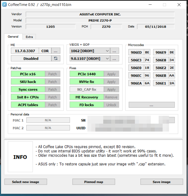 На модифицированных биосах по-прежнему будут работать серийные Skylake и Kaby Lake, если оставить их микрокоды (506E3 и 906E9 соответственно).
