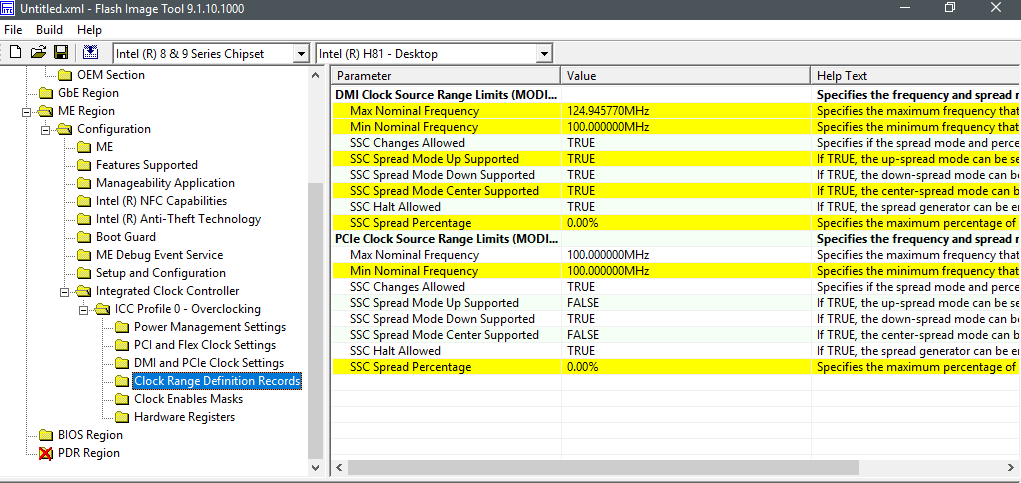 kostik1966beta, ну да, нижнее оригинал, верхнее - я подправил. Пути отхода есть? Типа программатор? Я с 100 серией дела не имел, всяко может быть. Как всегда, всё на свой страх и риск. Про 8 серию я уже сказал, там я экспериментировал. В setup биоса есть скрытый пункт spread spectrum control, он стоит в нуле, но через сетап ничего не добьёшся. Смотрел через BCP, но на Aptio V при правке получим кирпич. Открыть можно правкой NVAR, но смысла нет.