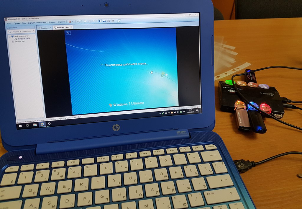 Через usb-хаб с собственным питанием через виртуальную машину с одной флешки ,где образ, на вторую, где создал виртуальный диск..удалось -таки воткнуть 7ру! всё это минуя буковский SSD. Теперь остаётся загнать акронисом всё это творчество в образ, дальше в виртуальной среде подгонять разные драйвера, сохранять образ, разворачивать акронисом на бук и ждать чуда.. громоздко, но подвижки есть То есть..с каким-то набором "стандартных дров от ВМваре" 7-ка на данном буке работает! Уже работает...