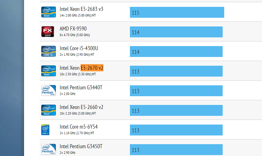 в однопотоке i5-6400@4.4Ghz, а в многопоточных играх E5-2670