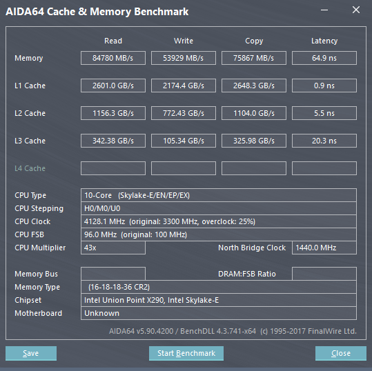 Memory frequency support was a little tricky(at this time) on X299. The 3200 MHz on occasion would not boot up or the motherboard would hang in an 'OC error'. The BIOS used however was very beta. But when it worked, it worked fine though. Quad channel is a little shocking when you look at bandwidth, read performance breached the 80GB/sec marker with 50 GB/sec writes.