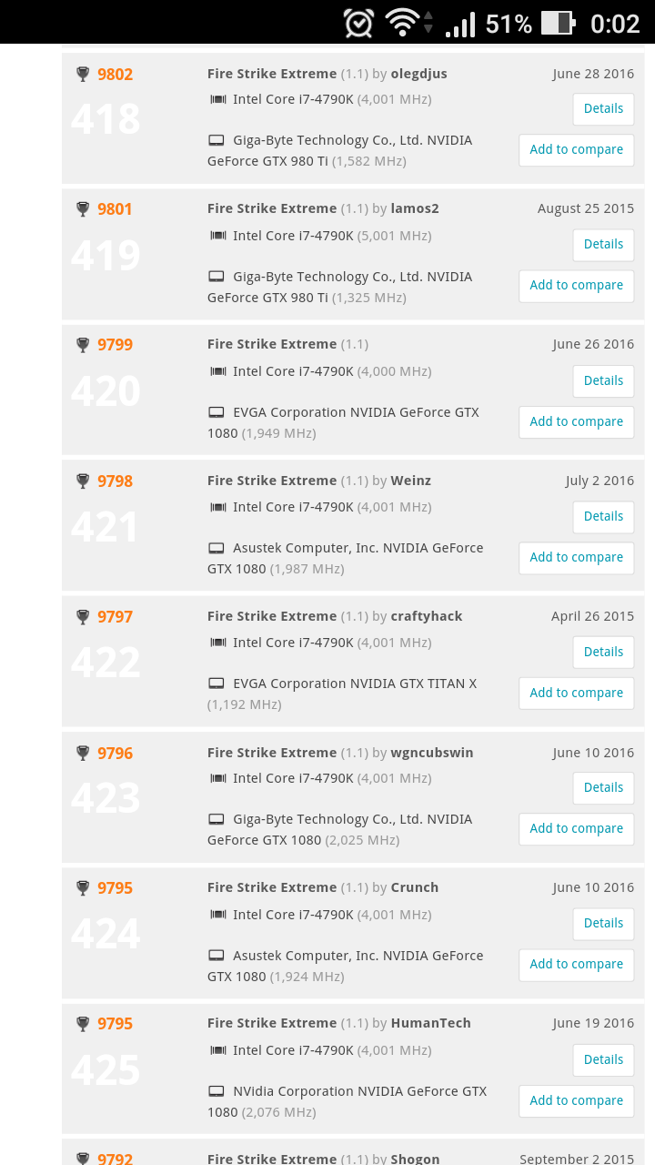 Ну я бенчи особо не гоняю, так балуюсь, а вк меняю в основном по экономическим соображениям, щас я продал 980ти за 43к а через пол года к примеру ее и за 30к хрен продаш