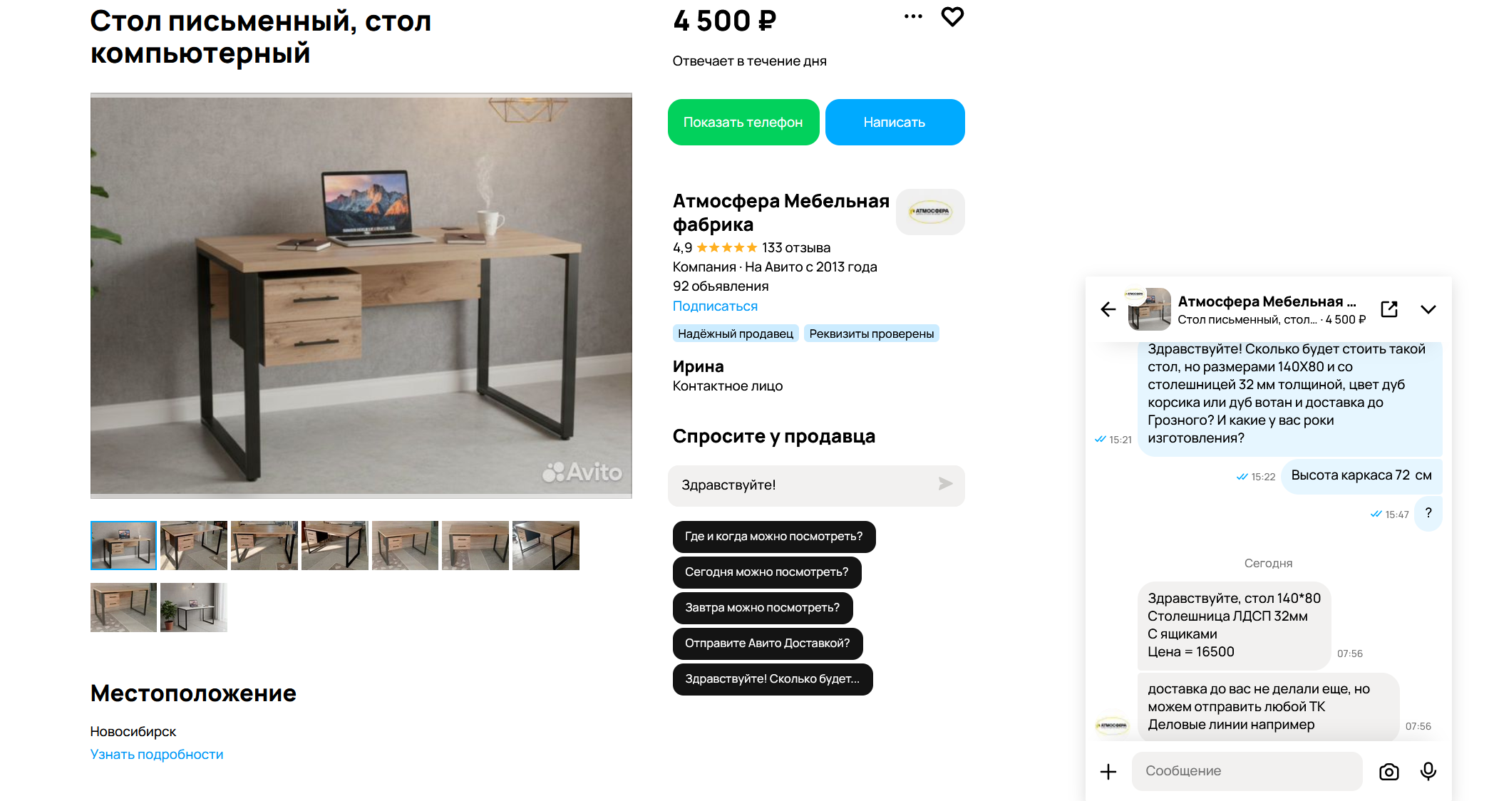 Конечно, это вполне реальная адекватная цена, но тут разговор о 8к за которые только каркас сделают или тумбочку со столешницей можно купить но никак не весь стол который я хочу. То есть человек утверждает, что на авито мне этот стол (мои хотелки см. выше) сделают за 8к и даже скинул ссылку на контору где якобы за эту цену мне его сделают, при этом они мне ответили что сделают его за 16500 (без учета доставки до моей деревни), то есть даже на 500 рублей дороже чем мой вариант (8к работа и 8к столешница и тумбочка).