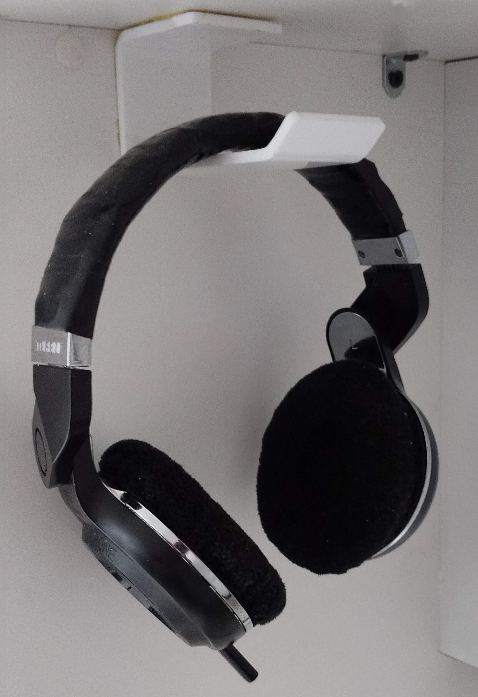 С такими крючками стоит иметь в виду, что из-за прямоугольного профиля они могут повреждать обтянутое кожей оголовье наушников, если те достаточно долго висят. Сам с таким сталкивался, когда после отпуска вернулся - а на висевших наушниках образовались довольно заметные потёртости в местах контакта с крючком.