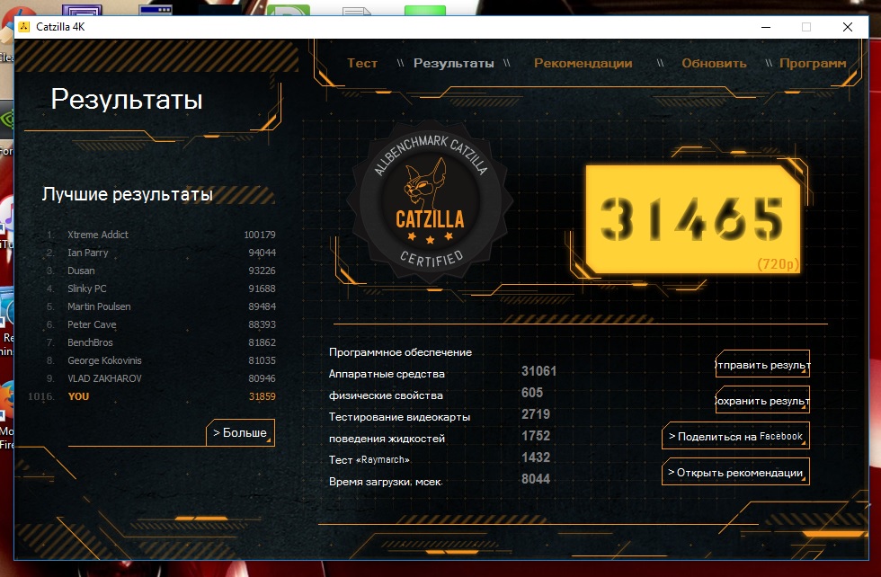 miwa спасибо, за счет процессора опять же резалты больше, нужно менять на i7 свой. Чисто результаты видеокарты у меня даже больше немного. Alzov спасибо