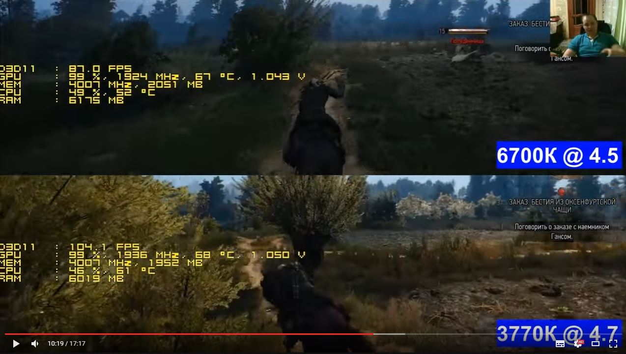 Да это бред по скринам судить, кадры ж не синхронизированы. Я видел тот видос в динамике, нет там никаких различий между этими процами, тк упор в ГПУ идет, как и должно быть. И тот и другой проц позволяют 1070 работать на максимум в Ведьмаке.