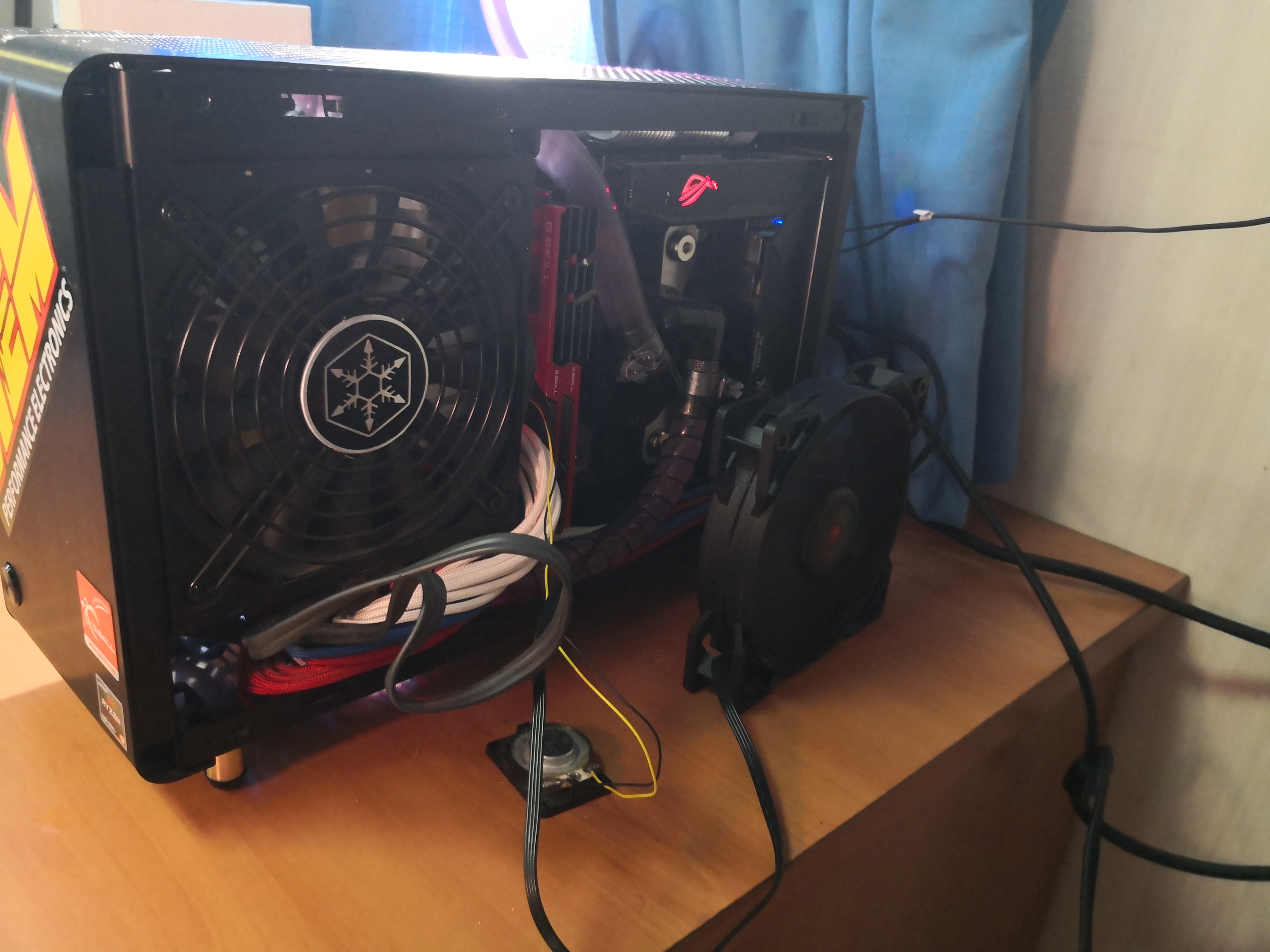 VII Это да, была идея. Но позже, сначала надо с обратной стороной разобраться. На днище вентилятор один 92 мм тонкий. С заводской проводкой можно было 2 поставить, ещё один под БП, так чтобы продувал часть с VRM видяхи, но с кастомной проводкой как-то не лезет уже. Да и с обратной центр вентилятора БП не совпадает с центром перфорации. С проводкой, видимо, придётся закупать материалы и делать самому. у брендовых HP компов провода мягкие и гнущиеся прям пипец, узнать бы как оно зовётся. В каталогах Molex и Paracord как-то не особо выбор хорош