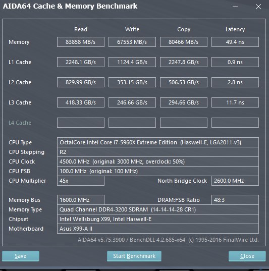 Может в проценты перейдем?) и да, 3200-на частоте 14-15-15-32, 3400-14-14-14-36. Надо еще посмотреть, как на 5960x отразится разгон озу в играх. Что еще заметил - увеличение частоты озу меняет скорости кэша L2. Но не линейно приросту частоты. Всё ж чахлый контроллер памяти, как ни крути
