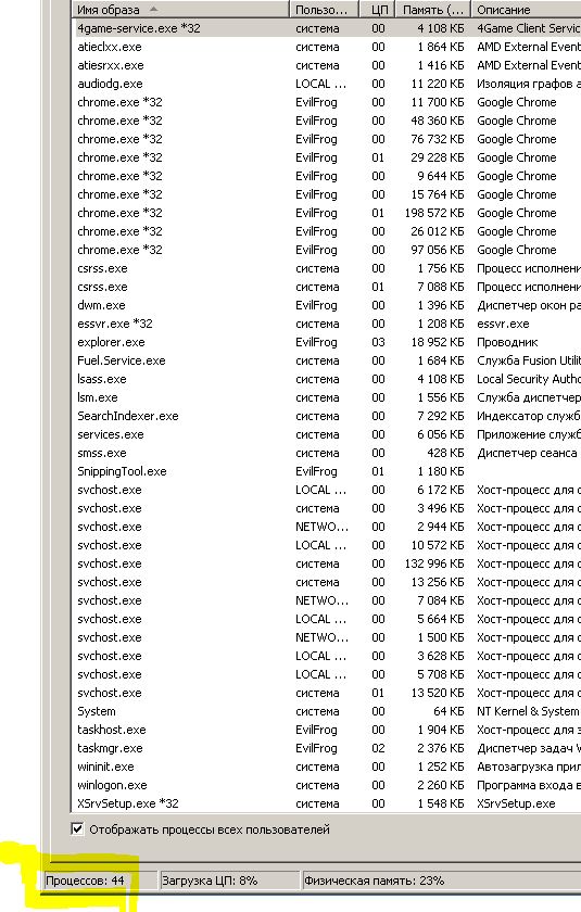 EvilFrog88 Ага. Вы просто не представляете сколько потоков в этих процессах, особенно, если многопороцессорность держат Я надеюсь, не IT специалистом работаете.