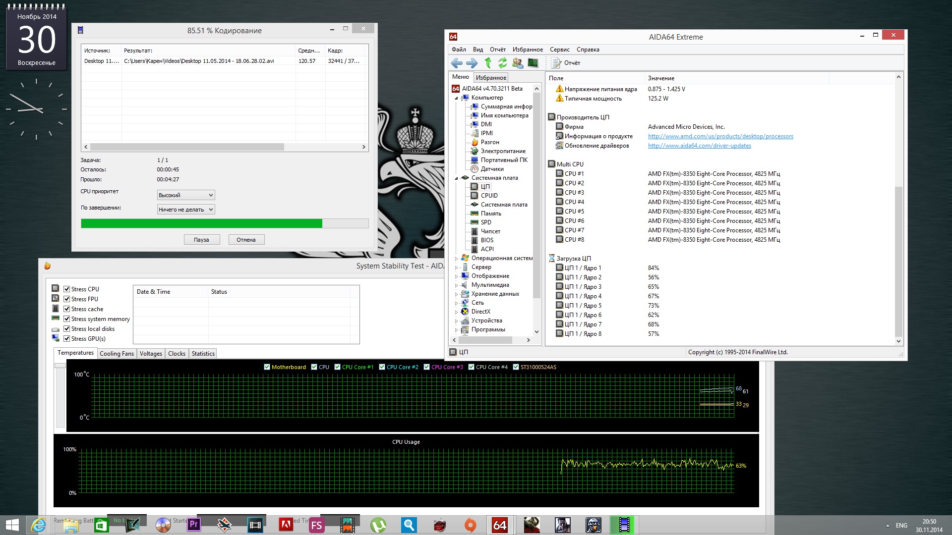 Извините или я в скринах чего то не увидел или действительно 4 ядра i5 2500к на частоте 4.6 Ггц на 50 секунд дольше кодировали видео файл, чем чем 8 ядер AMD FX-8350@4800 ?
