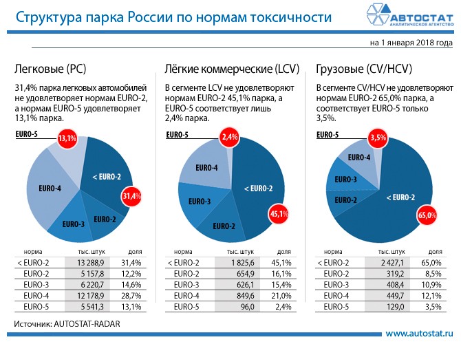 По свежим данным Автостата, в 2018 году более трети российских легковых автомобилей не соответствуют даже безвозвратно устаревшему стандарту Евро-2. Другими словами, 13,3 миллиона легковушек активно портят мир вокруг нас. Чем старше машина и чем хуже с ней обращались владельцы — тем сильнее влияние. С «дизелей», например, снимают фильтр, чтобы сделать его более эффективным: это также негативно отражается на экологии.