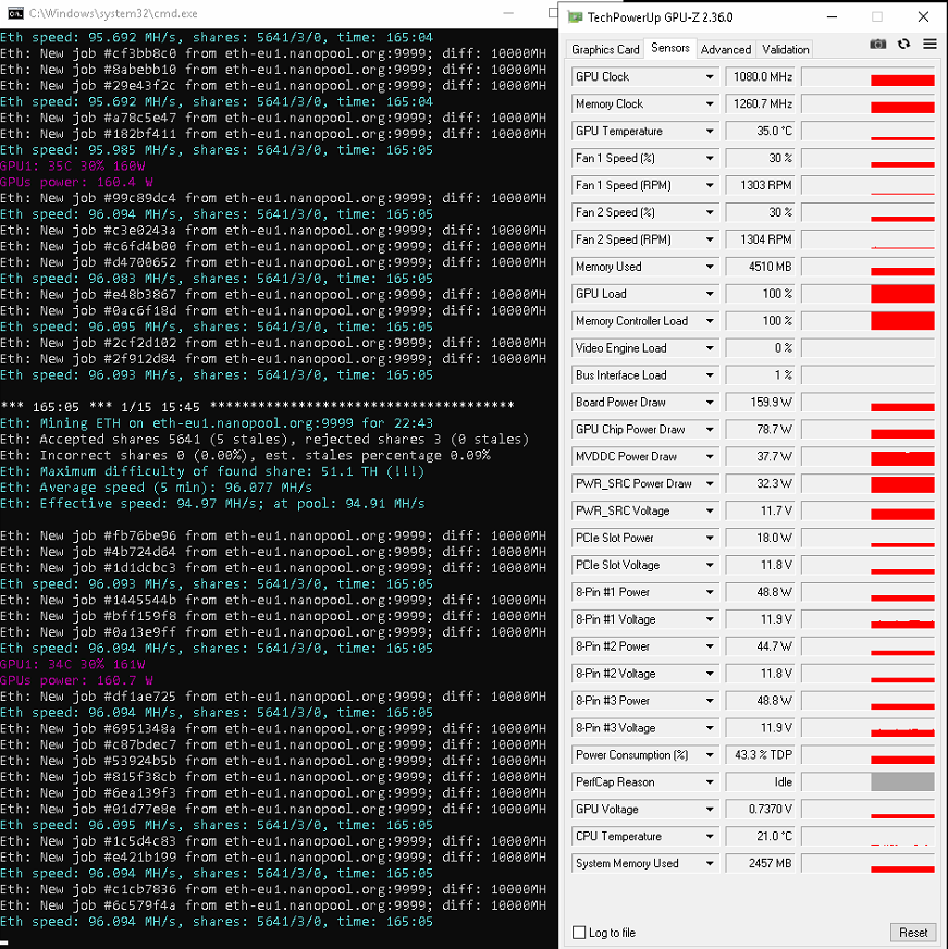 Это 3080 которая в риге на балконе. 3090 - в компе. На ней 125мх. Но тут важней баланс потребление/хеш. 3090 жрёт 300Вт.