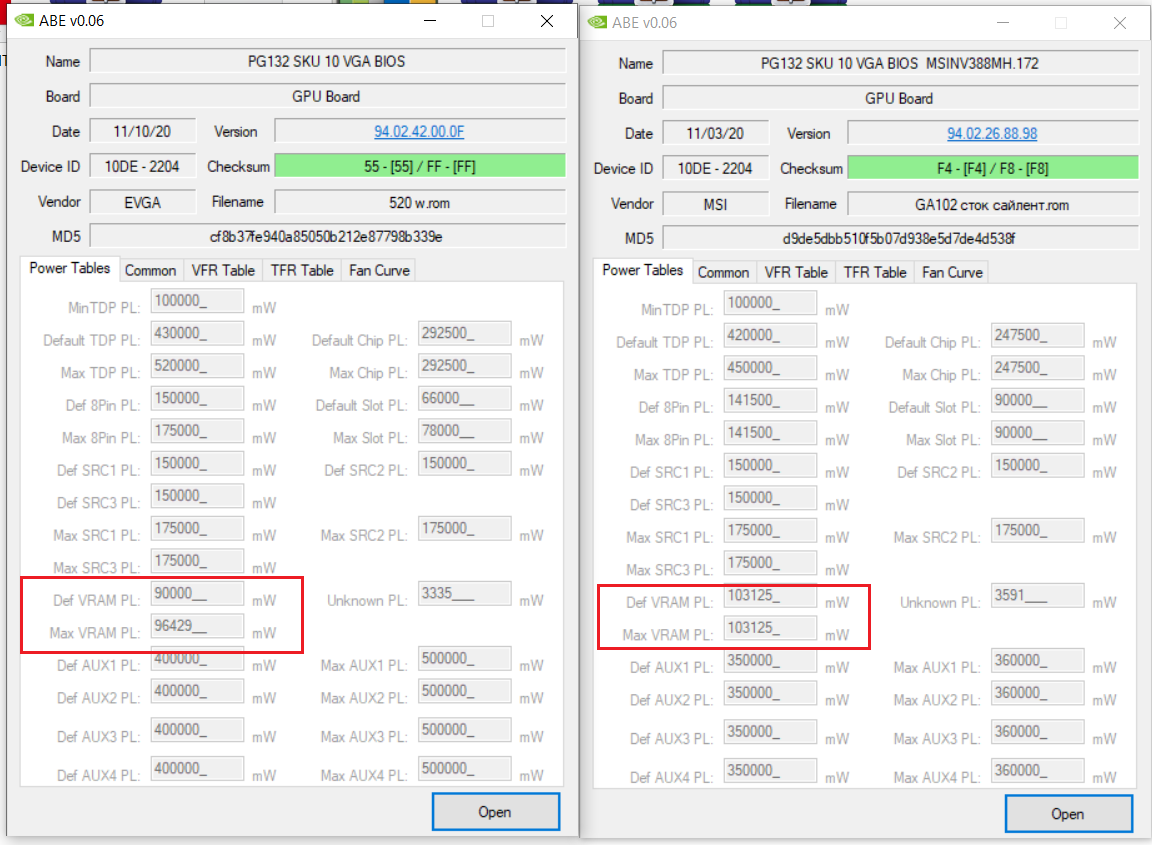 nag77 Максималку не надо сравнивать (есть вероятность попасть на пик в начале теста или в другом месте), надо сравнивать среднее энергопотребление через GenericLogViewer, в hwinfo64 вырубиться все датчики кроме GPU Power, в настройках Hwinfo64 в polling period в Global поставить 100 мс, в Sensor Logging назначить клавишу и вперед