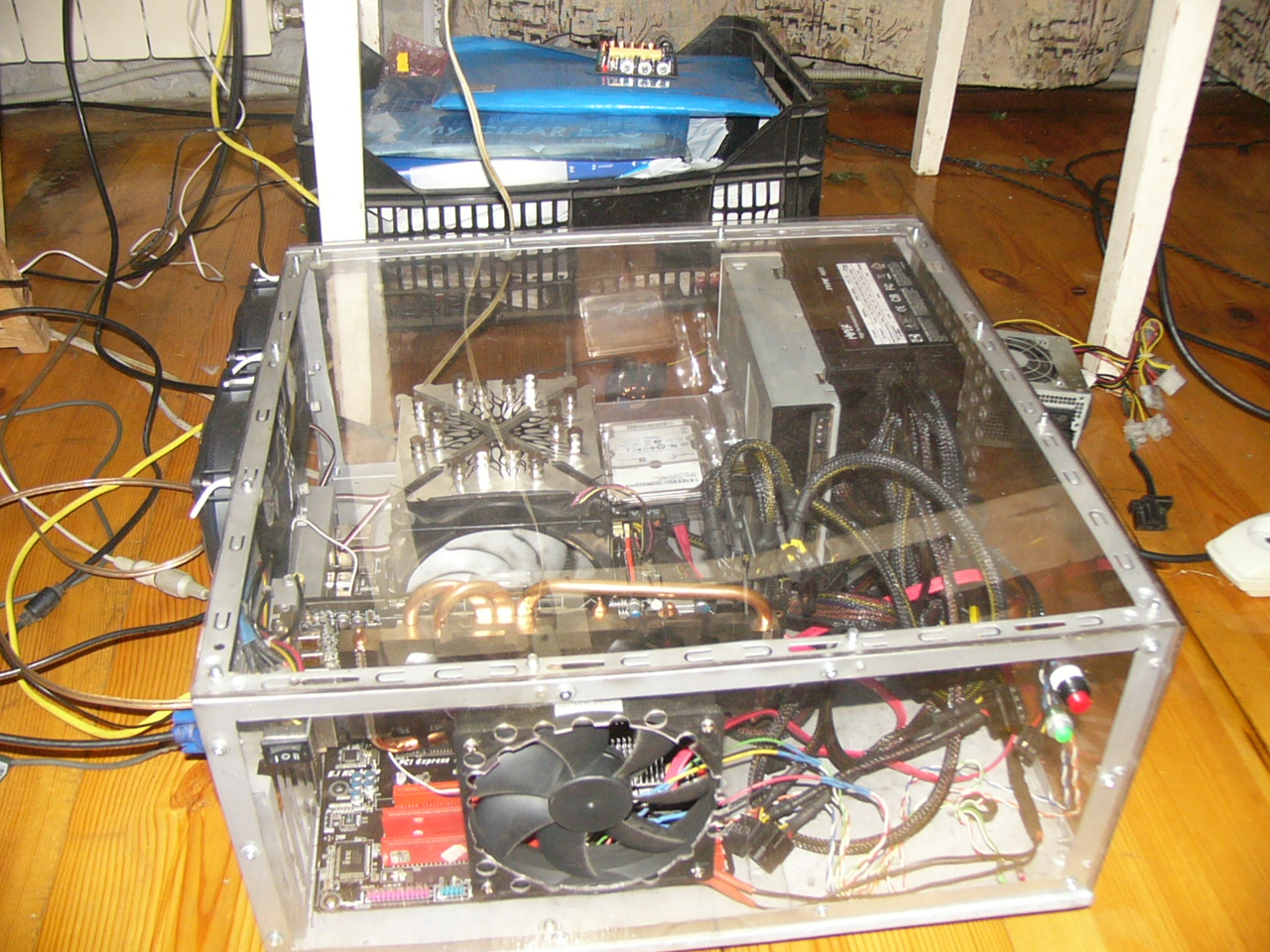 я давно брал несколько листочков в 2мм 1500-2р - ща лист стоит за 4р. Из этого пластика делают 90% передней оптики автомобилей - он довольно прочный. Правда рекламный поликарбонат в лёгкую царапается к примеру гвоздём. Просто захотелось обычный корпус сделать лежачим убрать всяческие перегородки т.е сделать хорошую циркуляцию воздуха, корпус резался болгаркой.
