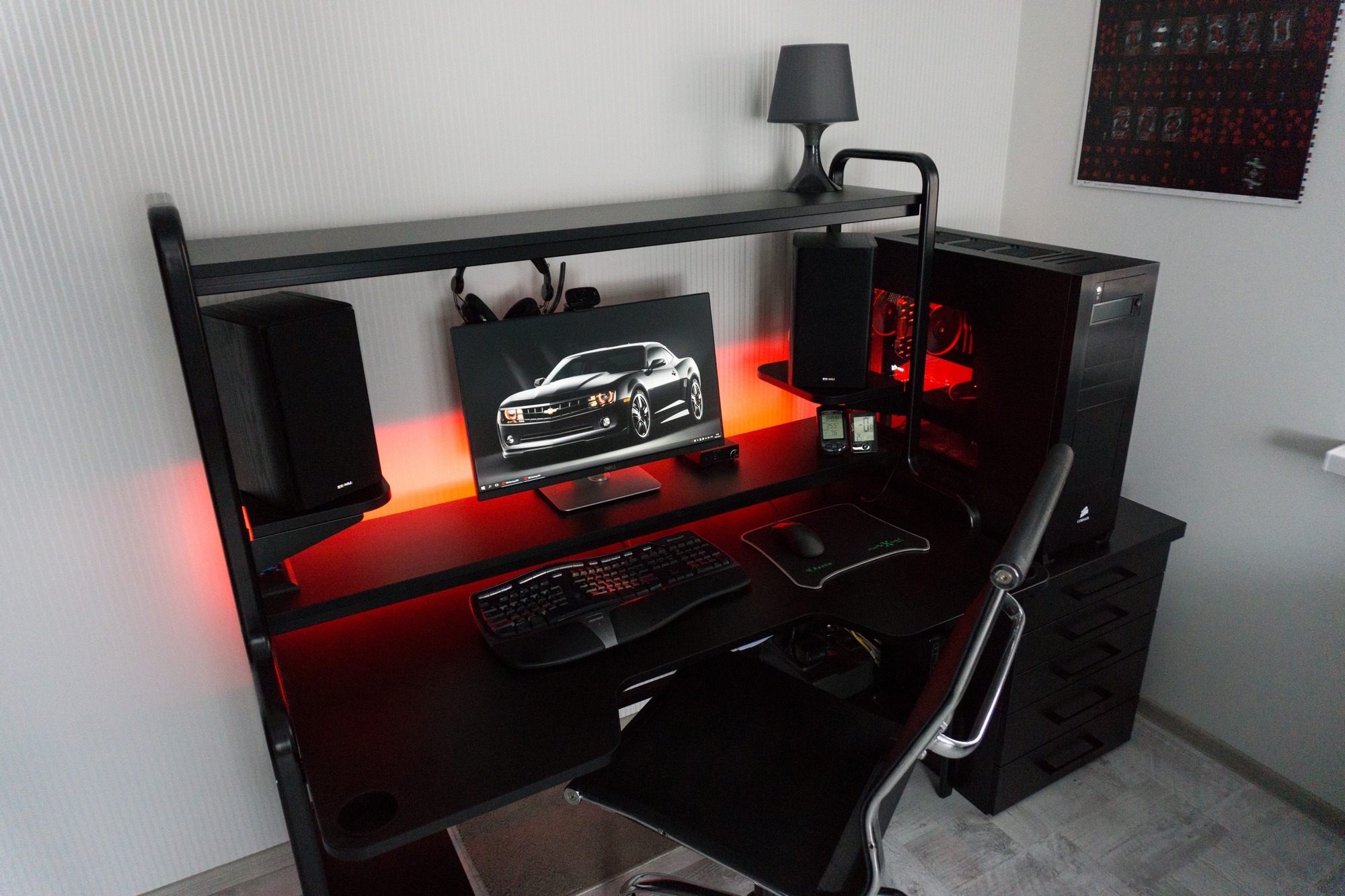 ПС: к лету точно стол поменяю, просто пока не до него было. Стол точно буду делать под заказ с нишами под саб и системник (один над другим), выдвигающейся клаво-мышью, полкой под центр, скрытой нишей под сетевой фильтр с внешним хдд и обязательно какой-нибудь ящичек под прости, господи, как они меня все задолбали кабели-зарядки-флешки.