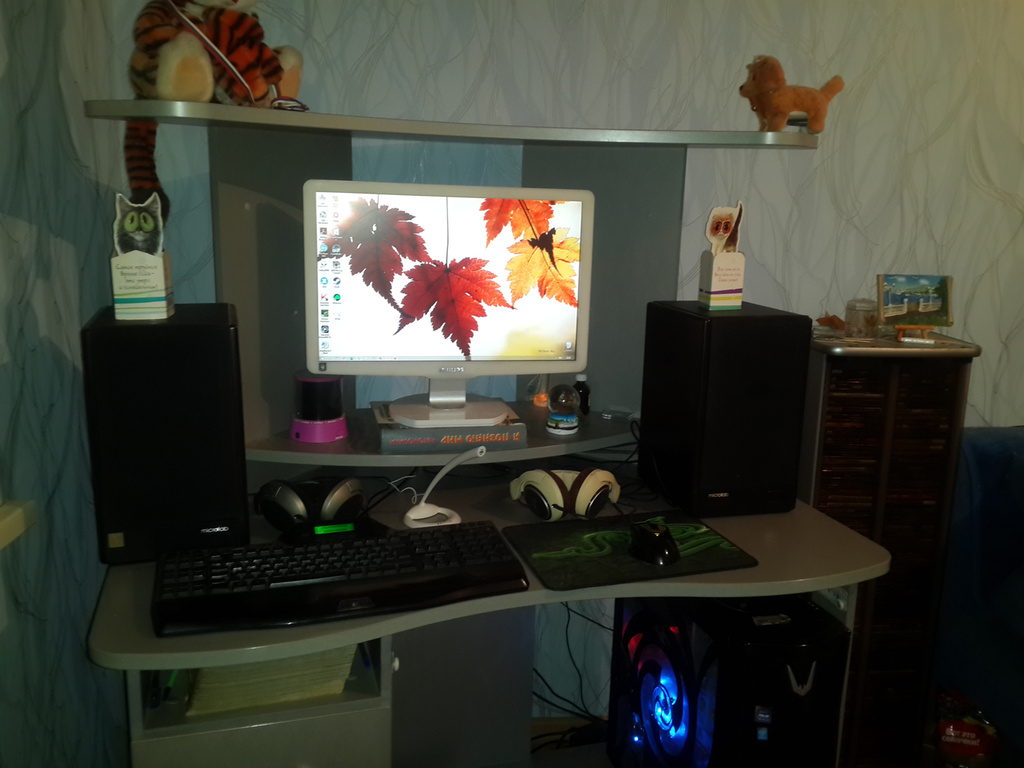 П.С. Если у вас рост не выше 240 см, то монитор желательно опустить вниз сантиметров на 20, эргономика же. И кстати, системник на столе занимает ценное рабочее пространство. Я не придираюсь, просто на фото как будто все специально размещено так, чтобы постоянно уставать.