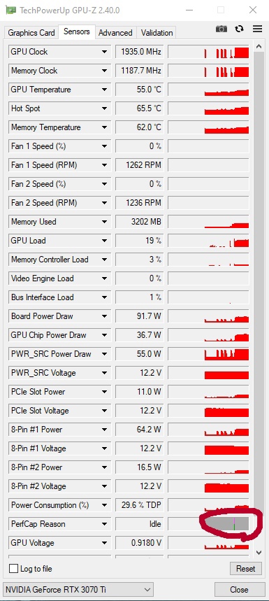 Подскажите, вот такие всплески есть как на скрине ниже, это норма?) или хреновый андервольт от меня) 3070ti такое обычно происходит при запуске игры, потом график серый на протяжении всего игрового процесса