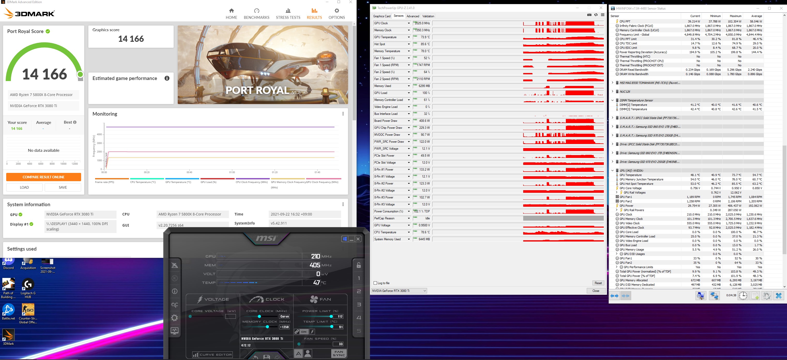 У тебя экземпляр огонь конечно. У меня в играх по памяти держит +1250, в майнинге +1700. Выше этого не крашится, но прибавки производительности уже нет. В порт рояле при 2010Мгц и 0.95 на чипе 14166 баллов https://www.3dmark.com/3dm/66346968? Не космический результат, но я доволен. После 3080 gamerock прибавка производительности заметна. В borderlands 3 в 3440*1440 стал 144 фпс держать