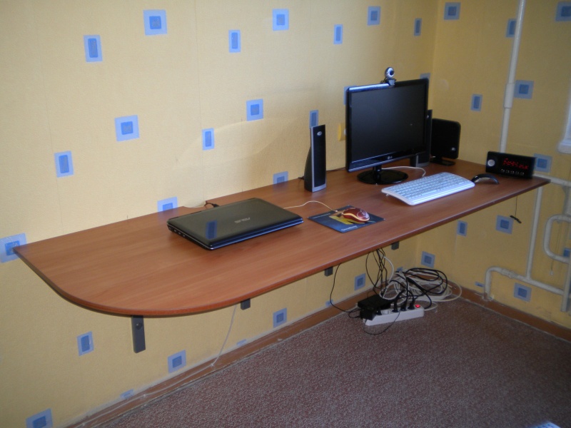 elek минимализм, но как слушать музыку без "обруча" на черепушке и куда складывать хлам? повесить колонки на стену по бокам и сверху тумбу на всю ширину стола и можно жить.