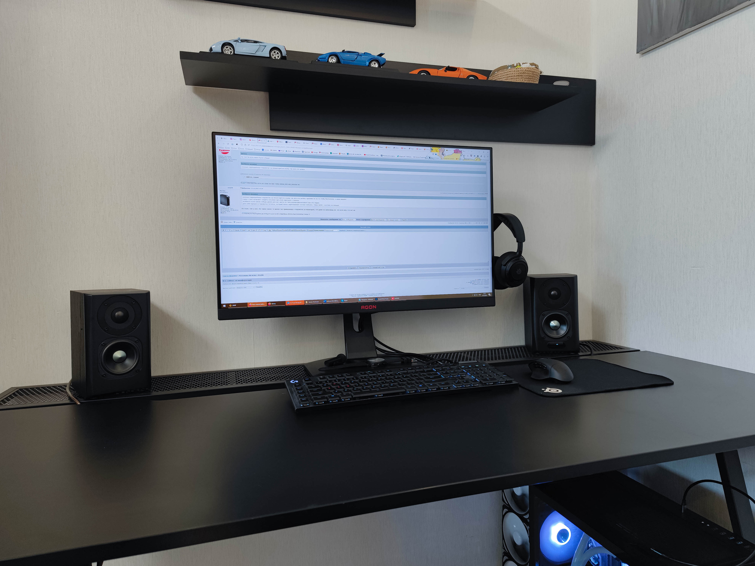 Чутка колхоза с подсветкой с алика. В остальном без изменений. По мелочи - другой телек и стульчак. Кресло теперь только для котэ, дома практически не играю - отпало за ненадобностью. #77#77 #77#77