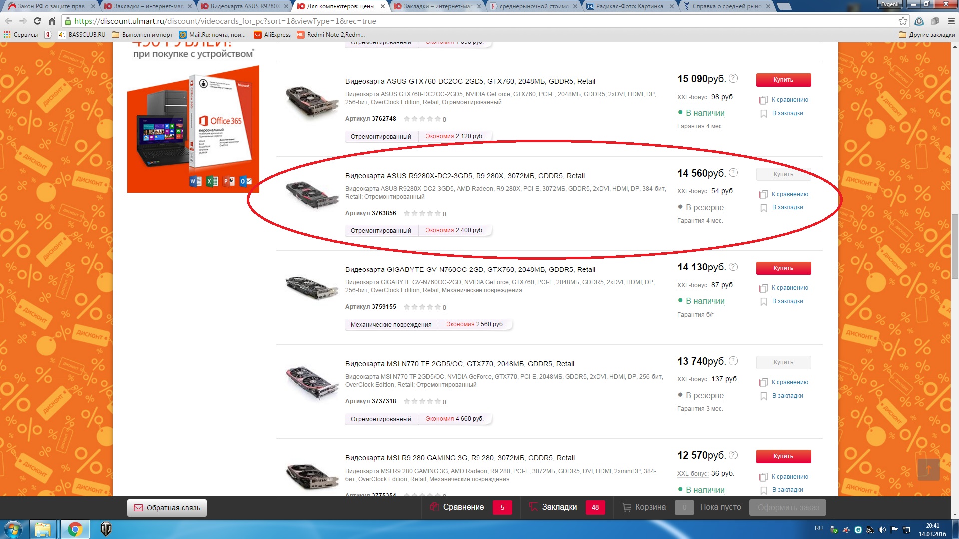 Добавлено спустя 13 минут 14 секунд: На мою претензию от 5.03.2016г вы дали ответ о невозможности определения стоимости видеокарты Sapphire Radeon R9 280X т.к. серия видеокарт R9 280X снята с производства. Однако серия R9 280X продается в вашем интернет магазине в разделе "дисконтные товары" Видеокарта Sapphire Radeon R9 280X продаётся за 4580 со скидкой в 13760 т.к. товар не работоспособный. Следовательно ваш магазин Юлмарт оценивает видеокарту Sapphire Radeon R9 280X в размере 18340 и делает скидку на нерабочее состояние товара. Прошу вернуть разницу между ценой товара и установленной ценой на этот же товар на дату 15.03.2016 в группе "дисконтный товар" без учета скидки, которая предоставлена в связи с неработоспособностью товара. С учетом вышеизложенного прошу вернуть уплаченной мною суммы 9700 и разницу в 8640 р. Прошу удовлетворить мою просьбу в добровольном порядке, не прибегая к судебным разбирательствам.