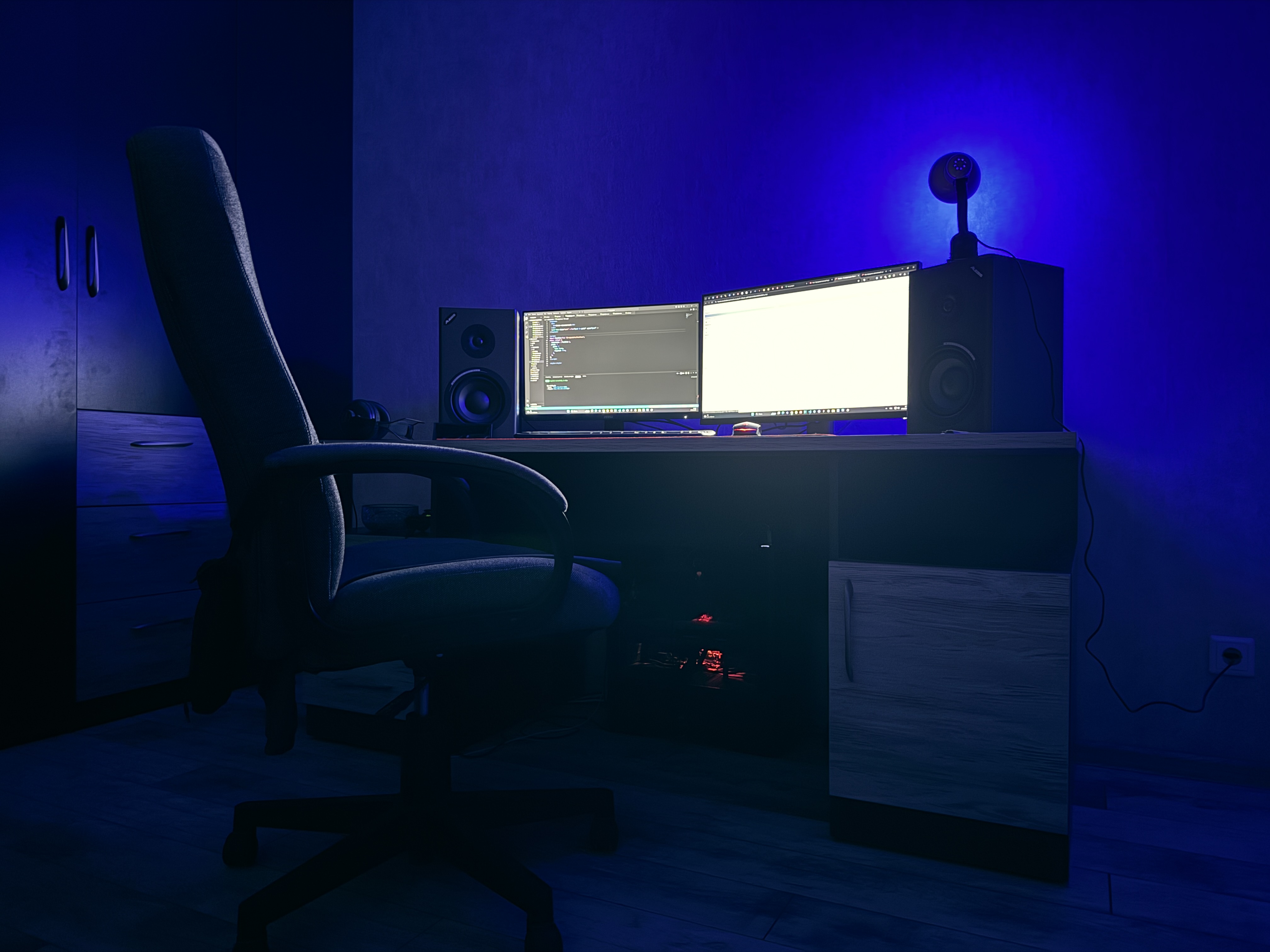 У меня раньше было примерно так https://anisola-mebel.ru/u/2020/09/YUnior-3.jpg только справа шкаф шире в два раза, надоело место сжирать и теснить, сделал металлокаркас, потом пришел к столешнице с подножьем убрав все лишнее взад. Получилось почти как тут Выбор стола #18347415