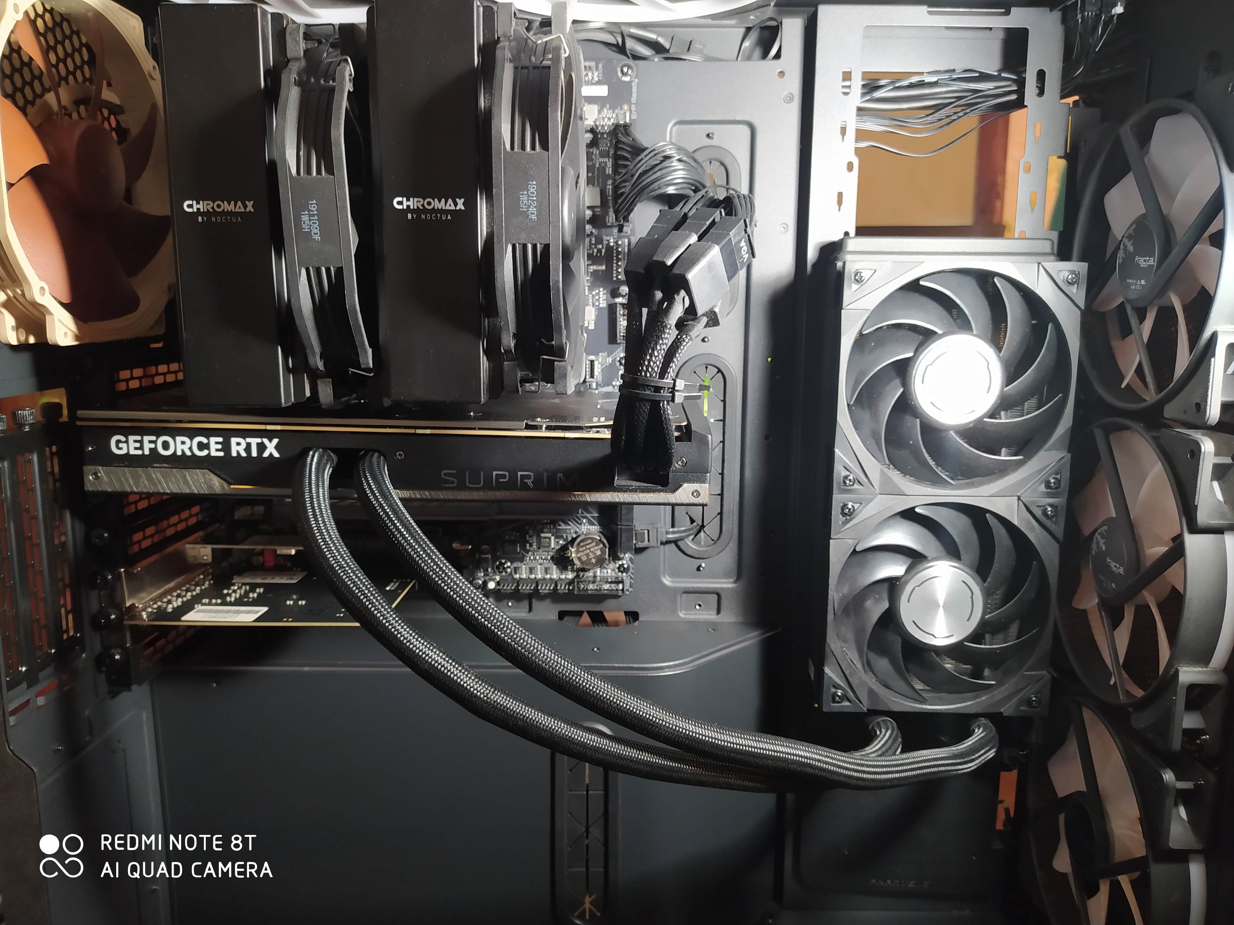 Корпус eATX PHANTEKS Enthoo Pro 2 приехал, как правильно разметить радиатор на боковой на выдув. Карта с радиатором - MSI GeForce RTX 4090 SUPRIM LIQUID
