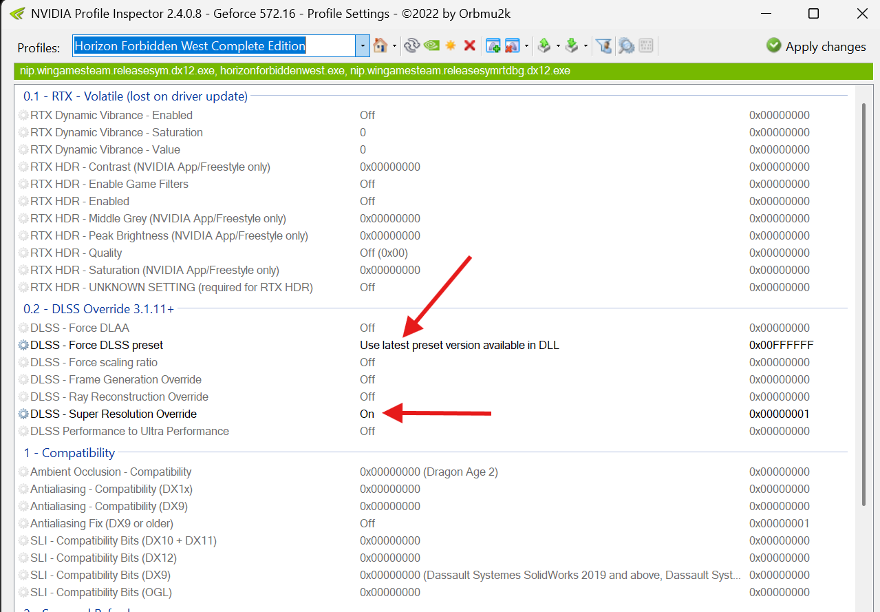 Я через dlss tweak включил, его вчера как раз обновили Не работает. Если НЕ заменять вручную файл длсс, то такая опция через Инспектор не даёт вообще ничего, абсолютно, файл старый. Если заменено через Нвидия апп, то работает (проверил в РДР 2, выдало, что версия файла самая последняя). Если файл заменить вручную, то да - работает прекрасно. В чём может быть косяк?