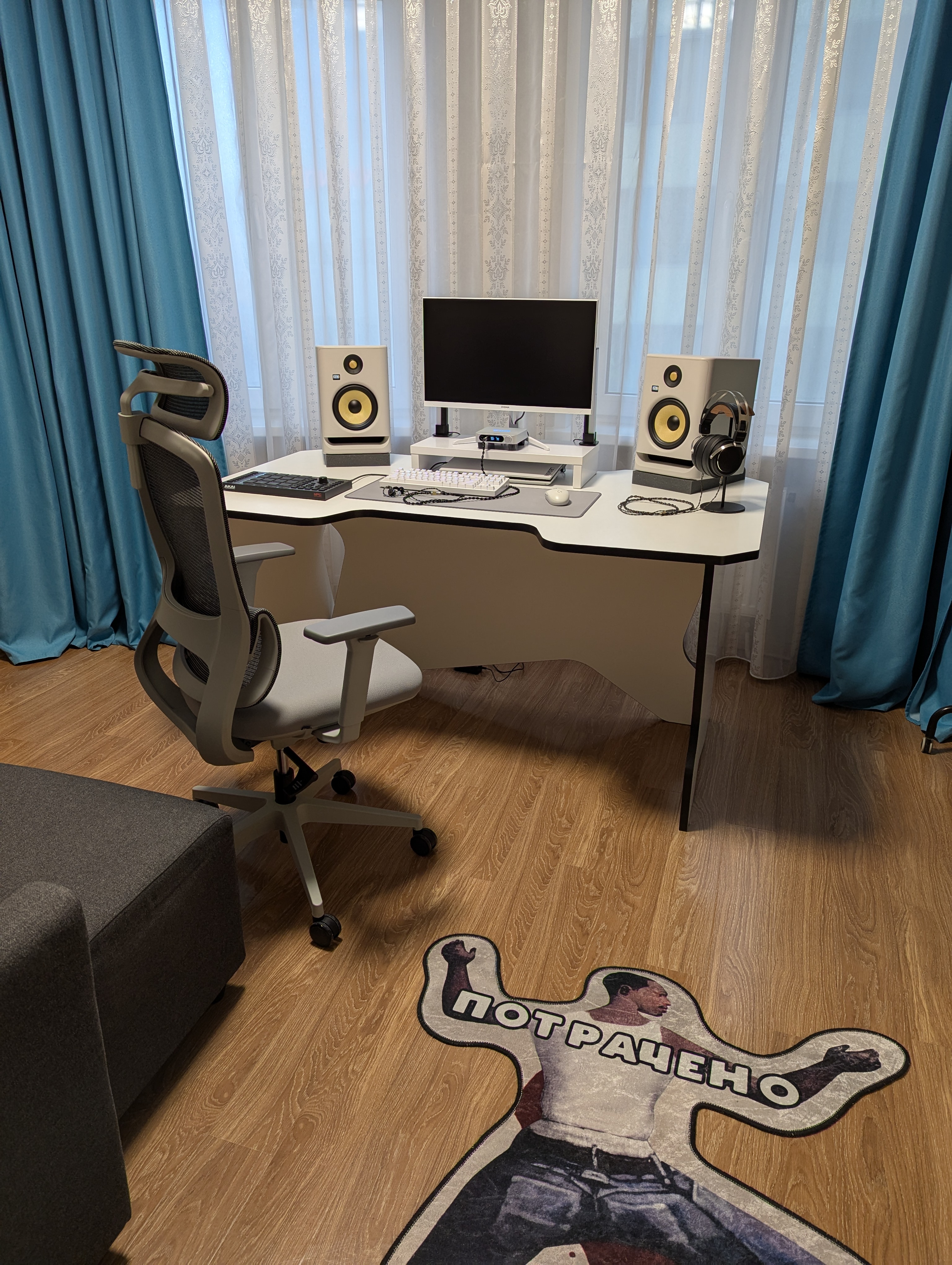 Ноутбук в ней размещен для экономии места, а монитор на своей комплектной ноге. Рост среднестатистический 1.75, по итогу получается вот такая посадка, 1 в 1 как на картинке, идеально.