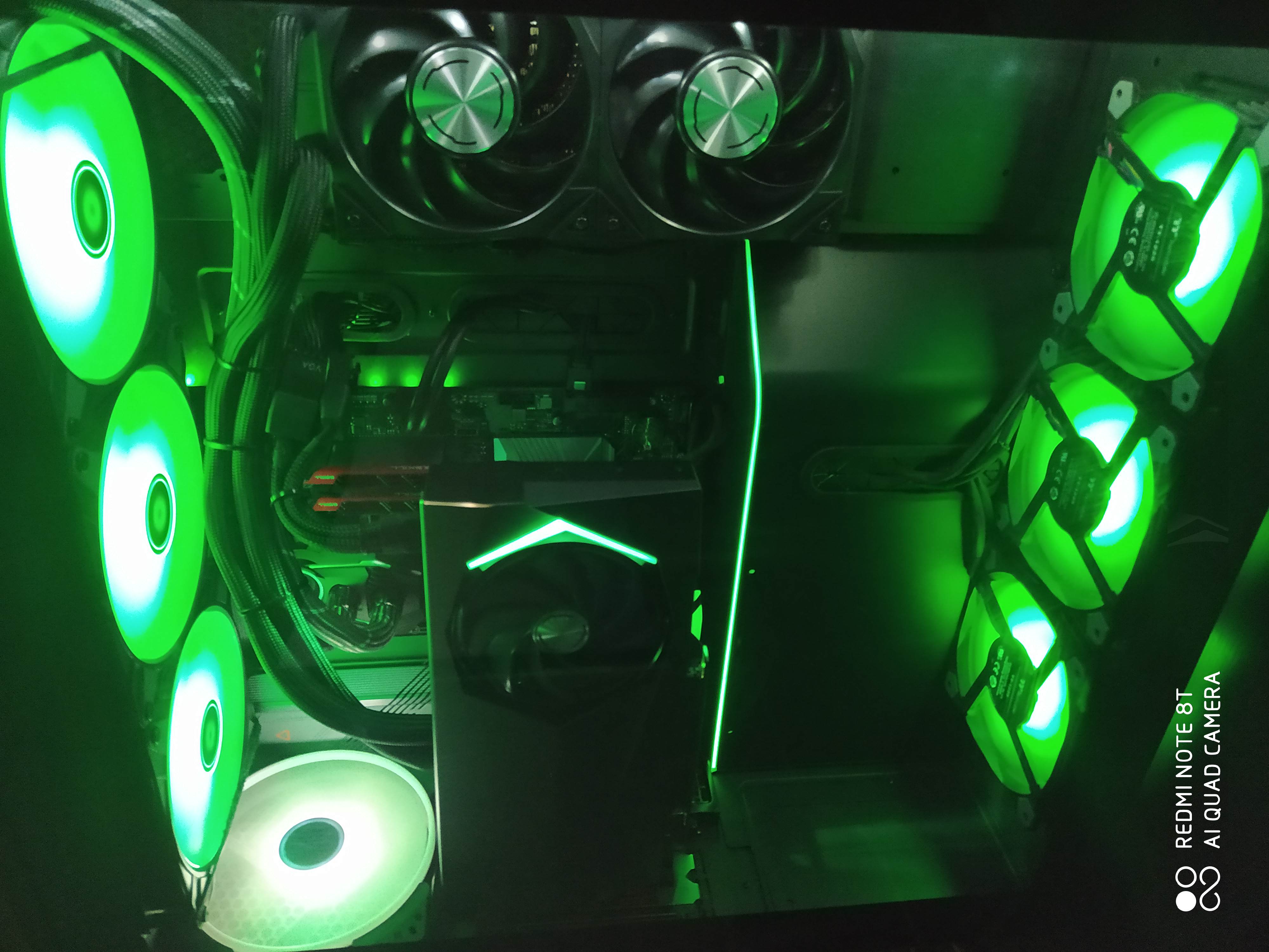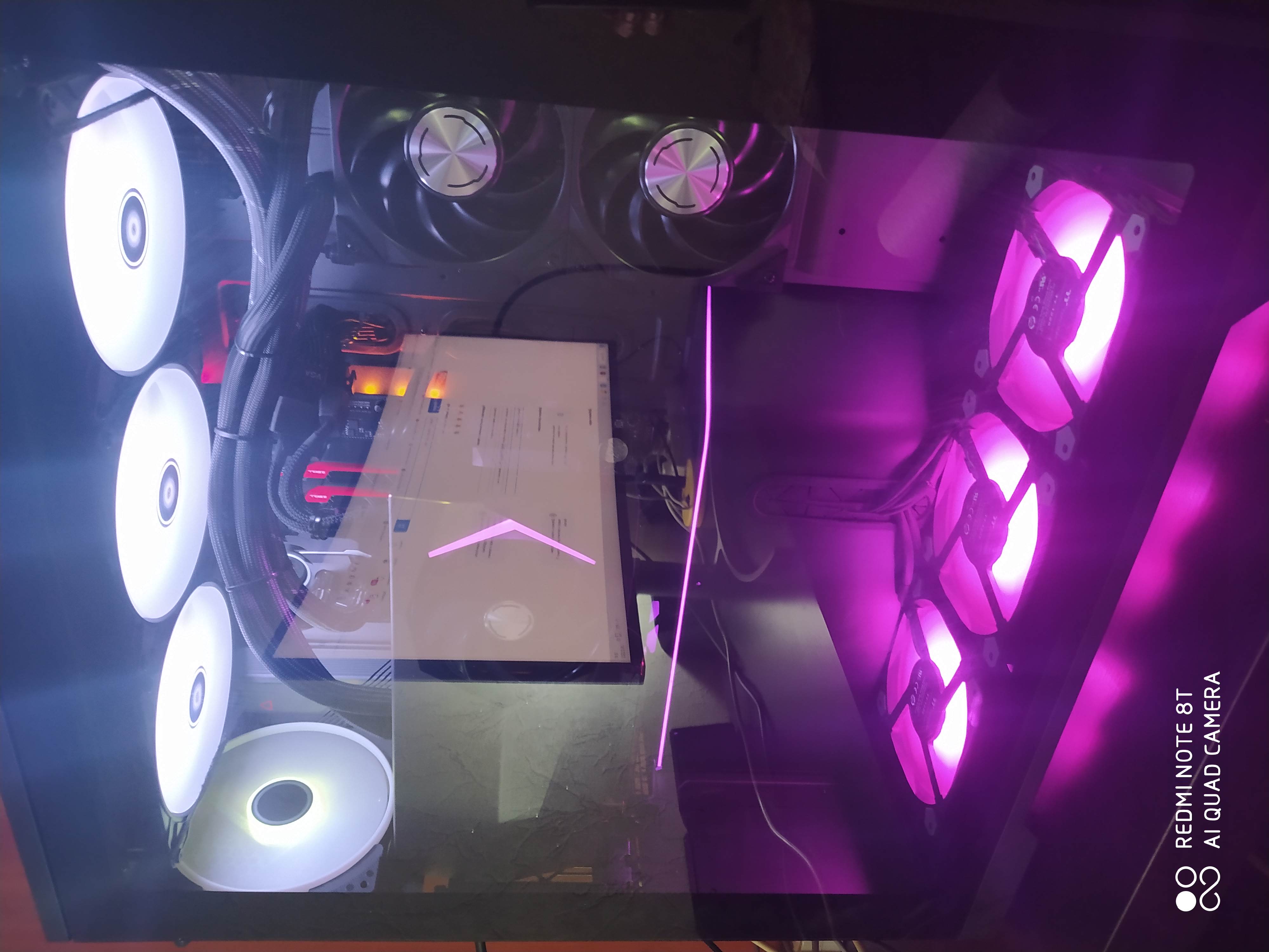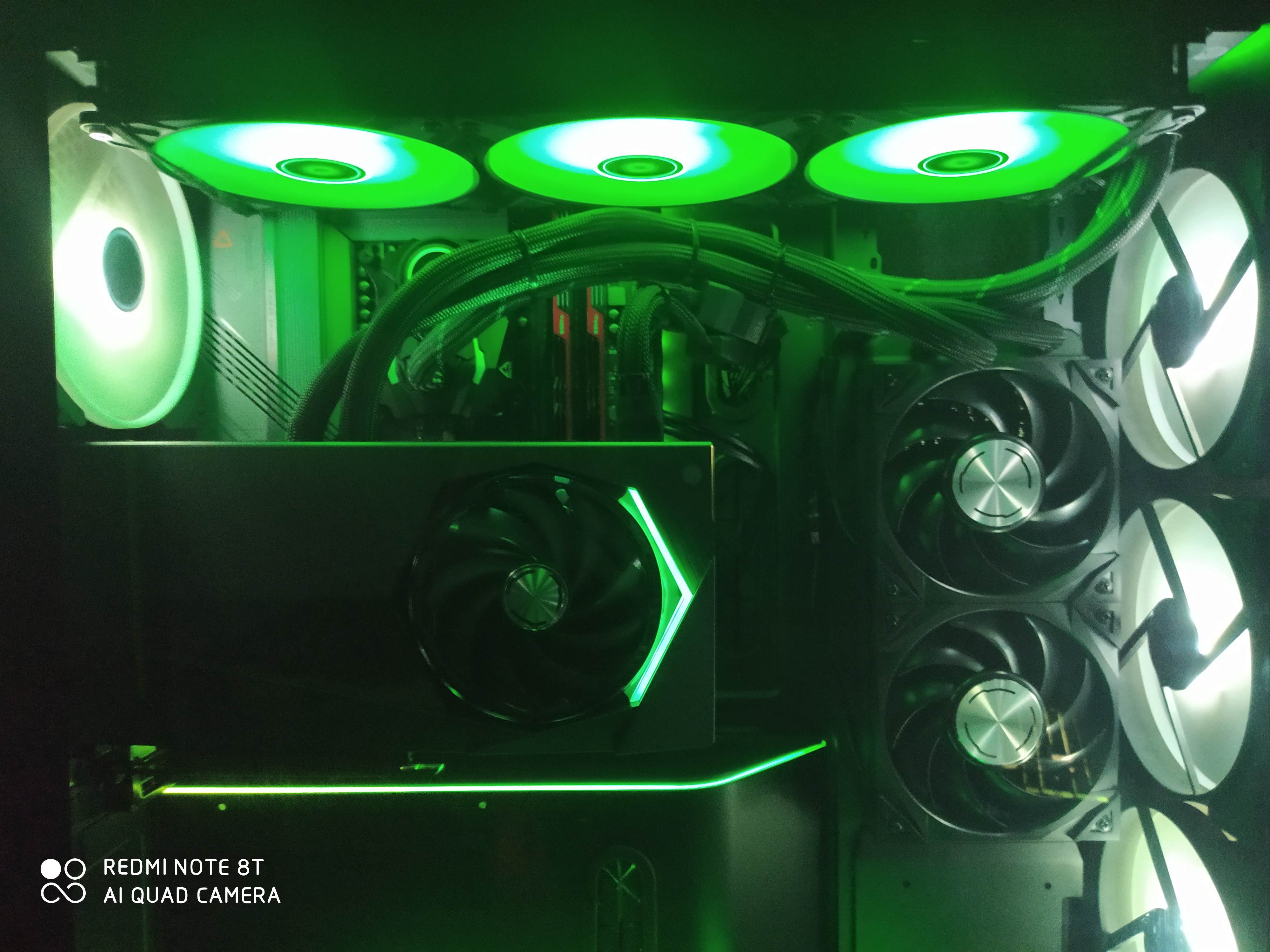 Огромная ,Система водяного охлаждения Arctic Liquid Freezer II 420 ARGB ,немного не влезла по винтам ,3-4 мм.Пришлось малость холхозить, сместить на хомуты. .Но все целое ,не видно ,держится отлично, и прекрасно охлаждает. Проц 12700 В целом получилось достойно . В помещение 20 , проц на браузере музыке итд 23.