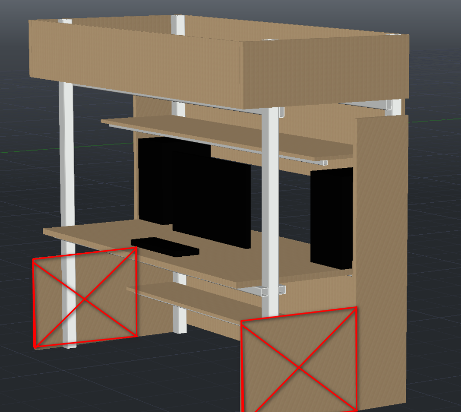 вот эти хрени уберите. зачем они? и продумайте сразу место для системника. сбоку это вообще не вариант тем более мебель с ноля делаете да и длинны стола предостаточно