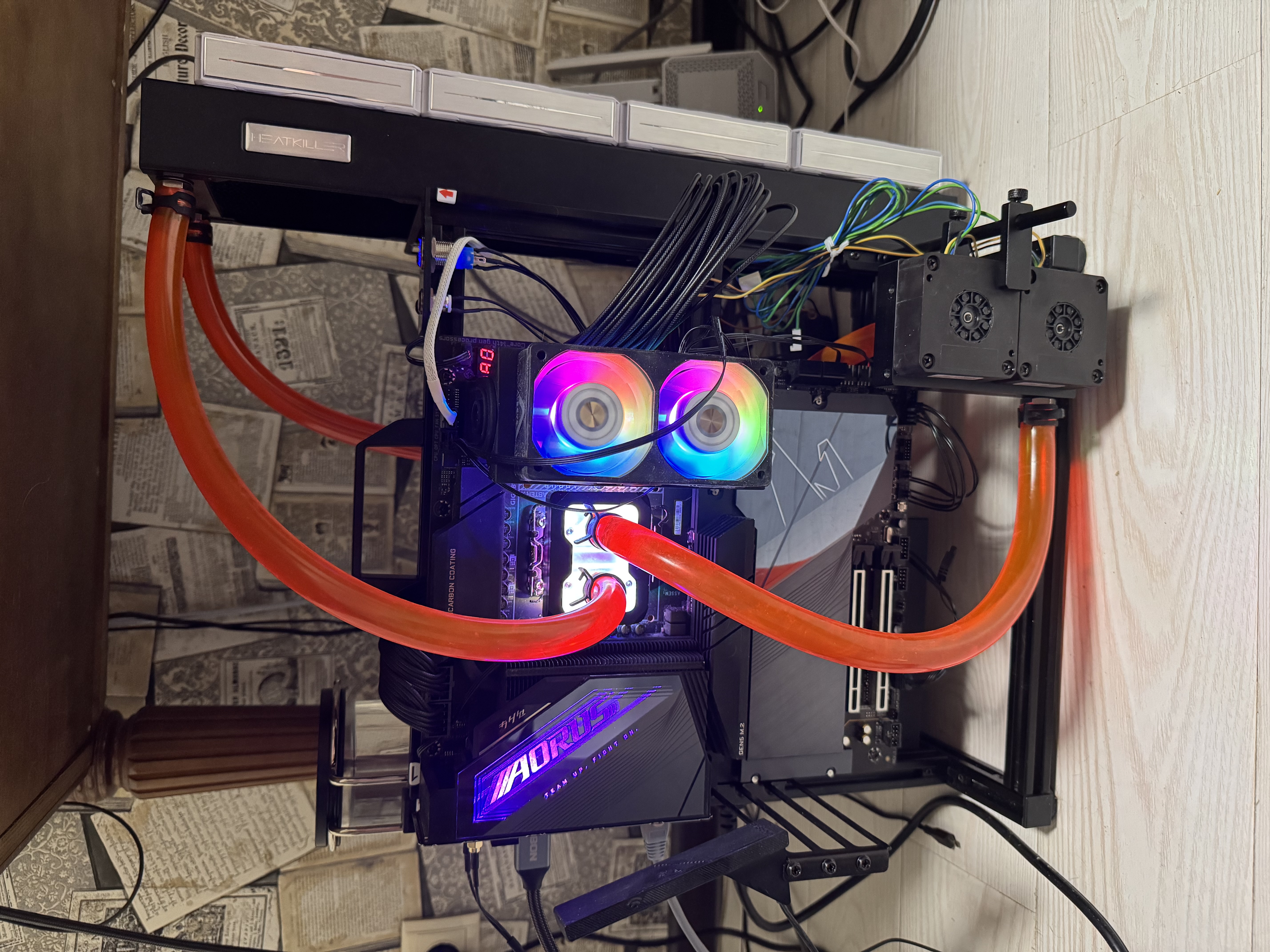 Ты знаешь, я бы лучше подумал сторону переходника под 45 градусов на процессор, и отводить шланги не вбок чтобы закрывать лгбт-подсветку, а вверх. Тем более открытый корпус это позволяет. По крайней мере прикинуть посмотреть не помешает, а там уже вкусовщина.