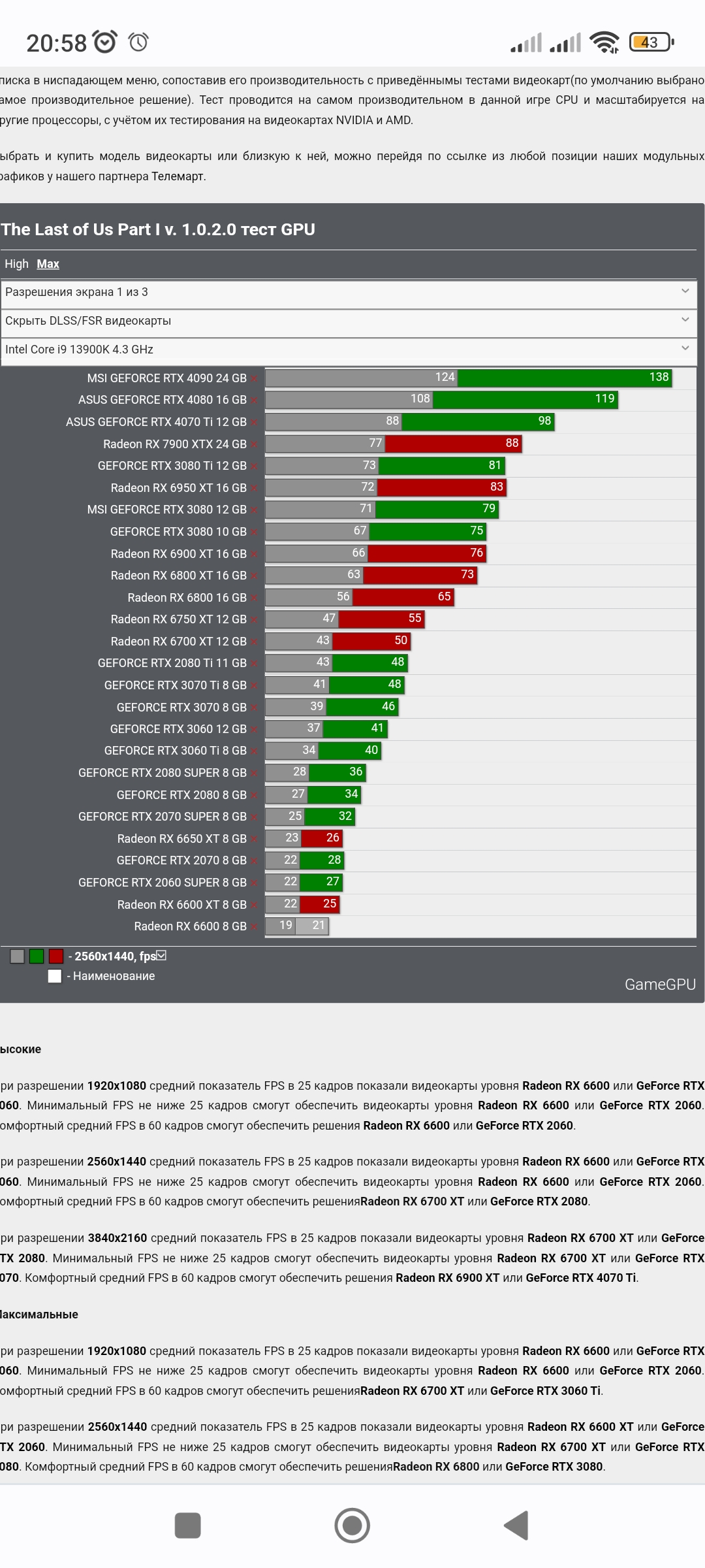 Если система в целом не помойка , то на 4070ti в 2к без dlss на ультра играется так же комфортно как и на 4080, ведь разница в производительности между этими картами в этом разрешение в среднем не превышает 20%: