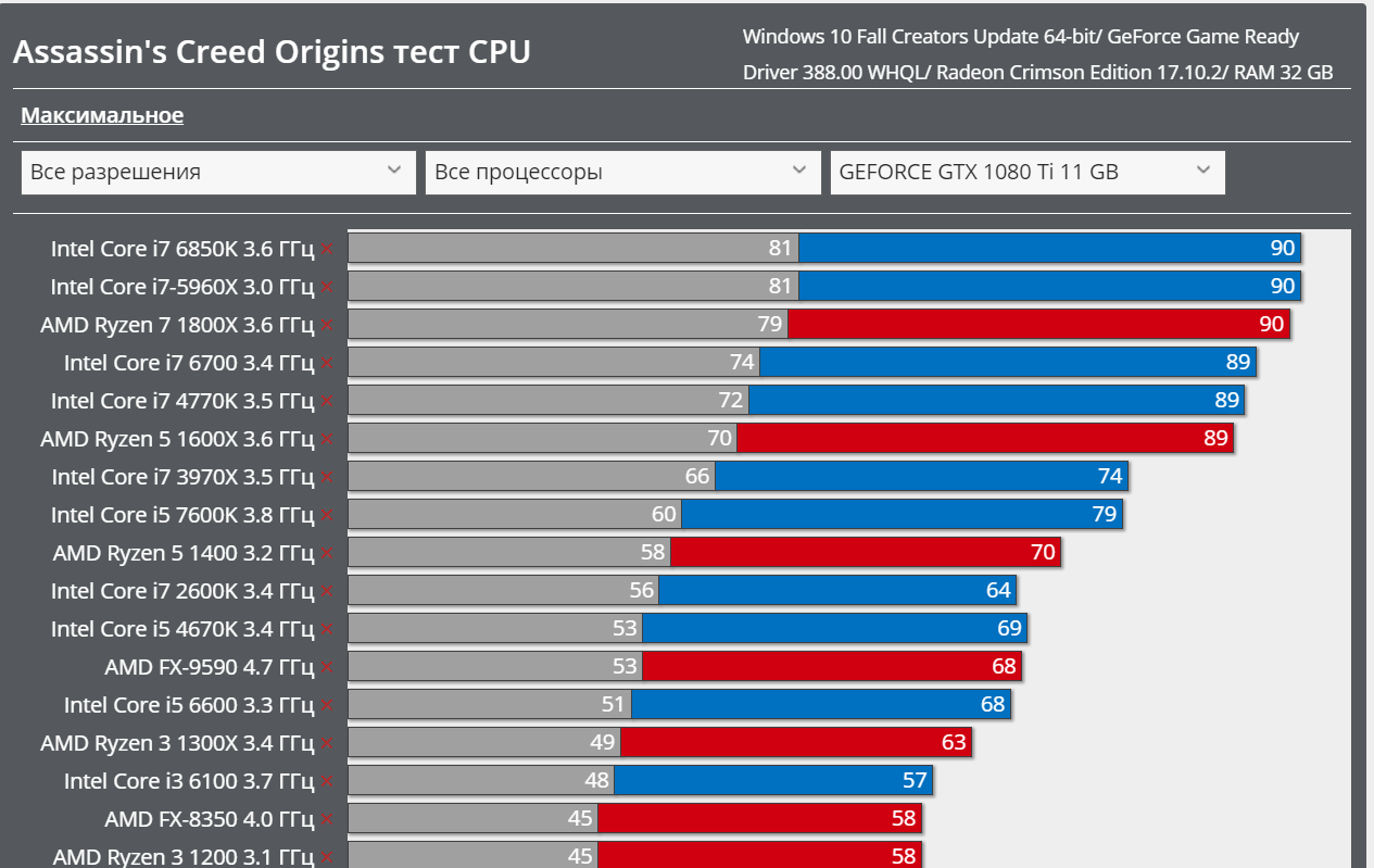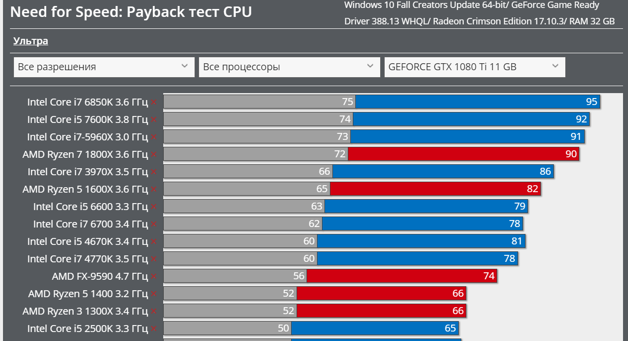 так если на глаз не видно логично, что с фпс все в порядке, и мне не важно веришь ты или нет, для меня то это работа и не первый день и месяц. Я лишь высказал то, что те настройки, что были у тебя слишком низкие и большинство процессоров с ними легко справляются и это не характеризует райзен, как более производительное решение, мои же настройки ты ставить почему не захотел
