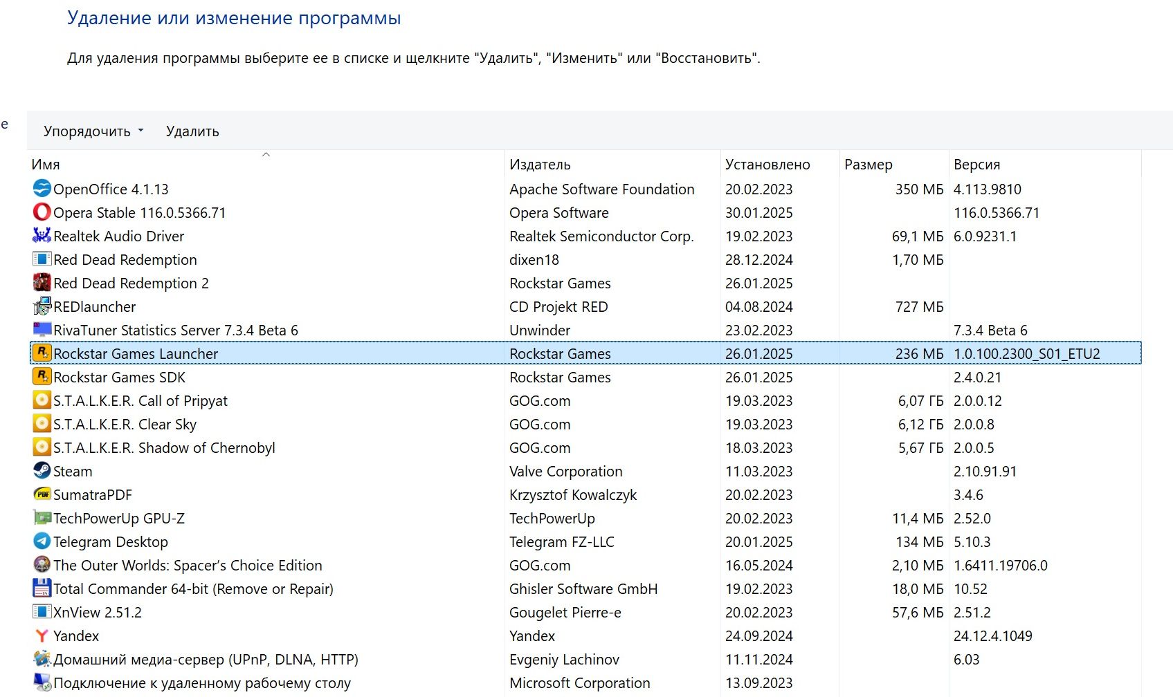 Давай так, я открыл браузер Хром и зашел на сайт Рокстар и там у себя в профиле вижу : Ну и среди программ на моей Win11 вот: