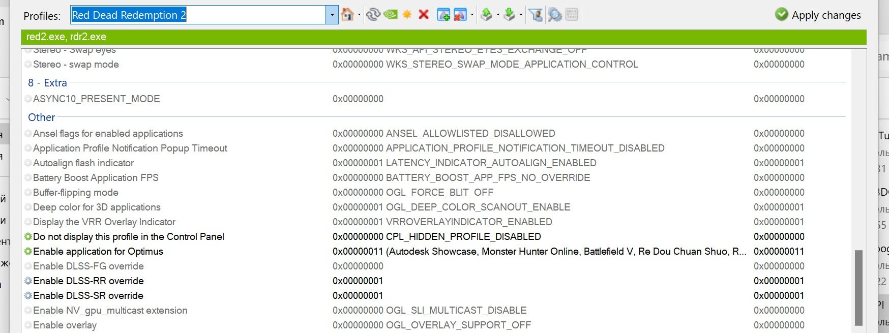 В настройках NPI нужно было выбрать RDR2 и применительно к этой игре проставить единицы вместо нулей в двух нижних черных строчках: