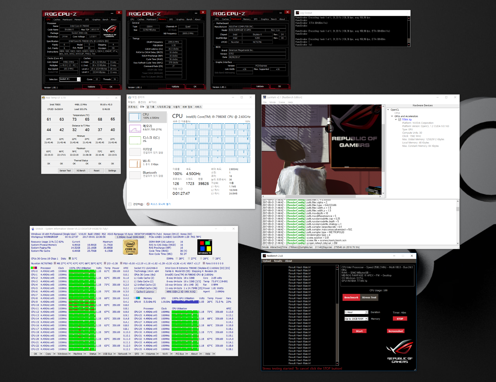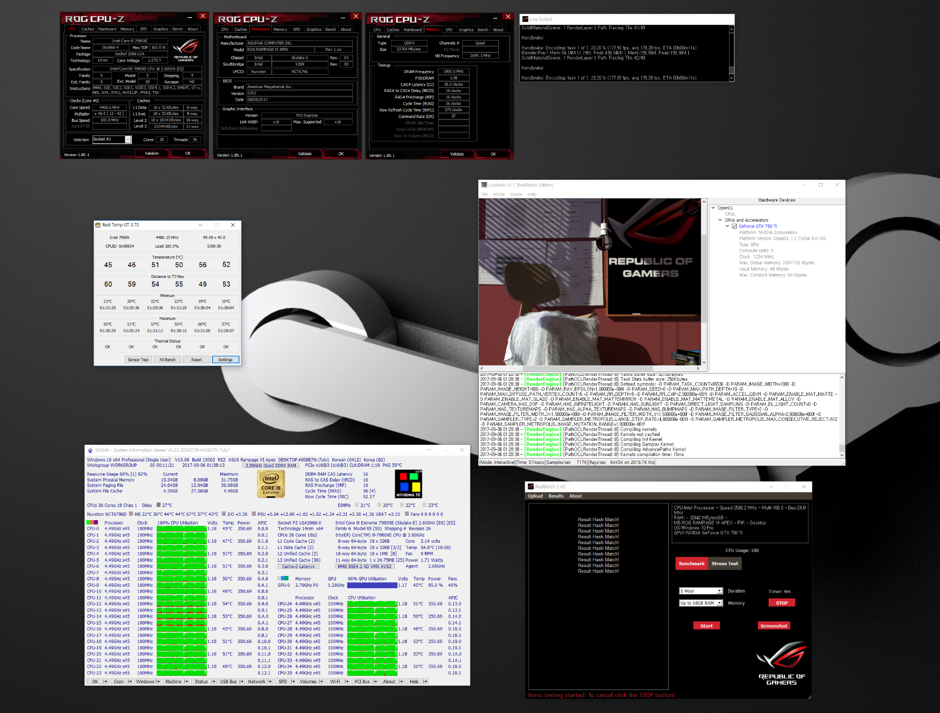 I7 7820X Все тесты (кроме ЛИНКС конечно)) проходит на 4700 по всем 8ми ядрам при напряжении 1.220V Кэш на 3200 AVX 512 на 4100 и обычный AVX на 4100 Память 3200 самое горячее ядро 80г (в среднем 77) в играх 65г CINEBENCH R15 - 2055 3DMark 2013 физика - 24800