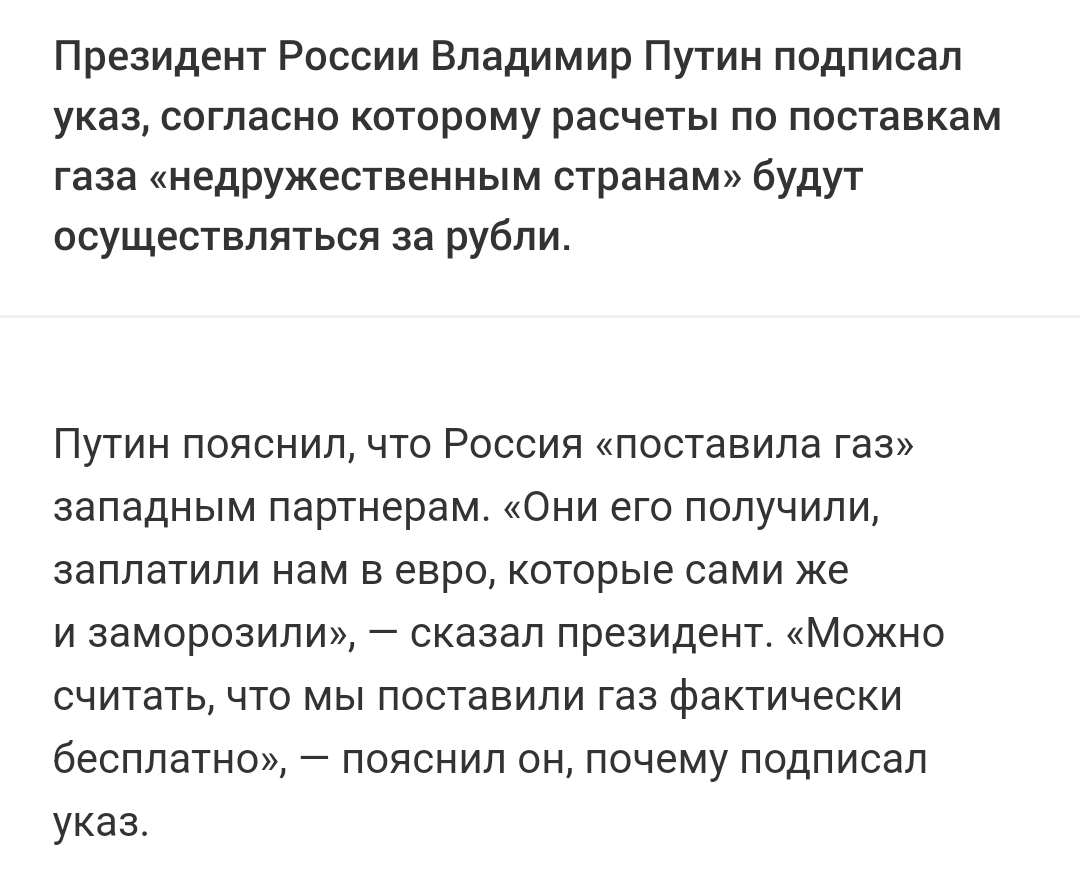 Кто шарит в экономике, касательно всего этого хайпа насчет покупки газа за рубли? Какая разница между: Европа переводит лярд евро - покупает на него лярд газа, или Европа переводит лярд евро - покупает на него 100 лярдов рублей - покупает на них тот же лярд газа. Или там какая-то другая схема?