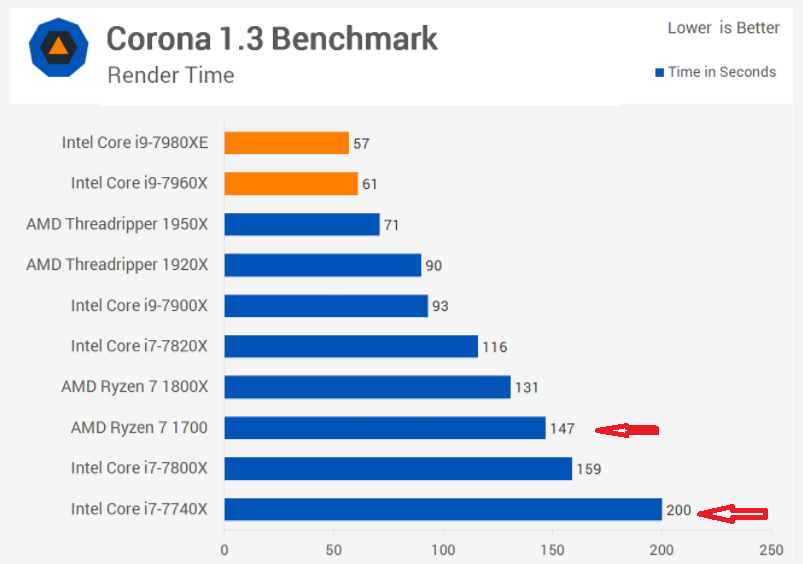 Ну 1700 на стоках имеет самый выгодный ватт\производительность Если ему и даунгрей по вольтажу сделать то и вовсе 55 ваттный бедет) Ну не дя игр они а сливают тредрипперу в игорях..какие то игры владельцы запускать то будут В приложениях быстрей на 17%..и в два раза дороже https://www.computerbase.de/2017-09/int ... en_windows