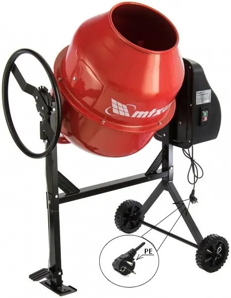 На сколько я знаю, бетономешалки на 220 - 230 вольт имеют защиту в виде контакта РЕ на вилке, то есть если сеть оборудована защитным заземлением дополнительных мер защиты не требуется. Так что если при выполнении всех выше изложенных требований бетономешалка бьёт током, то стоит проверить наличие контакта РЕ на вилке и металлическими частями бетономешалки.