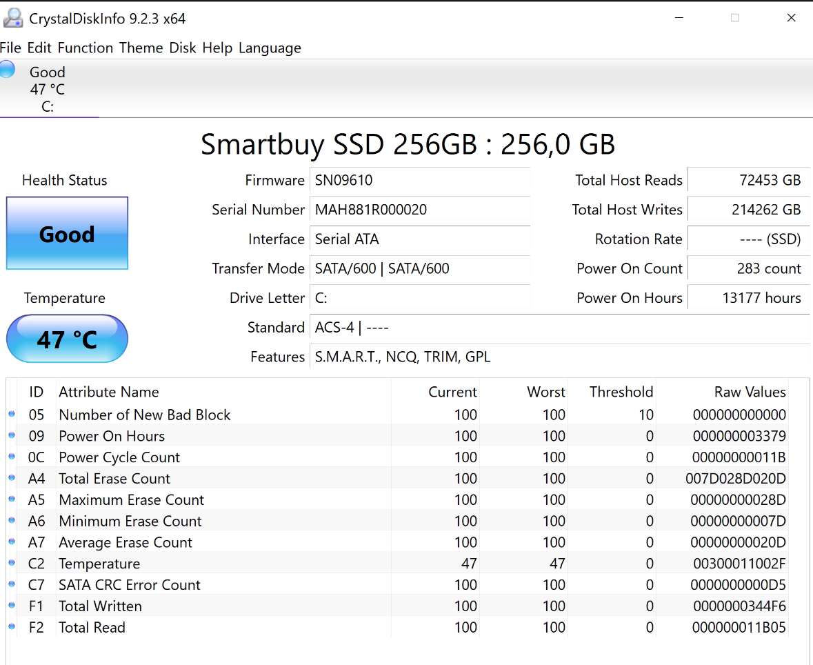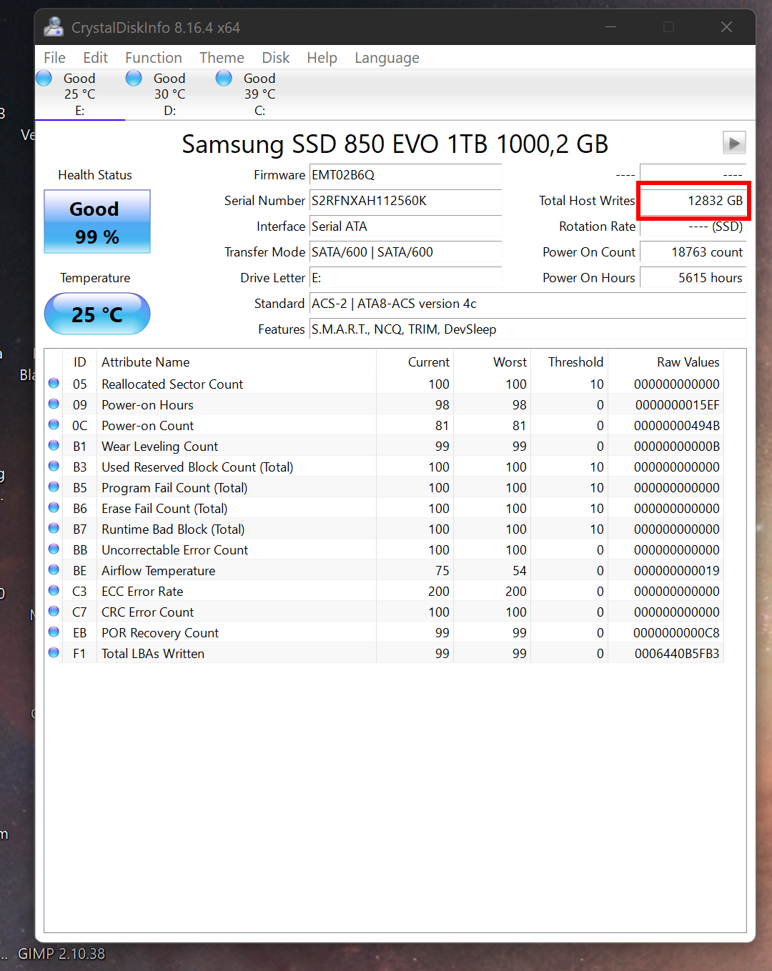 Добавлено спустя 3 минуты 33 секунды: Покажите скриншот проги CrystalDisk на Samsung 870 Evo. Вот на пример у моего SSD записей на 21. 773 террабайта, так что ему ещё работать и работать.