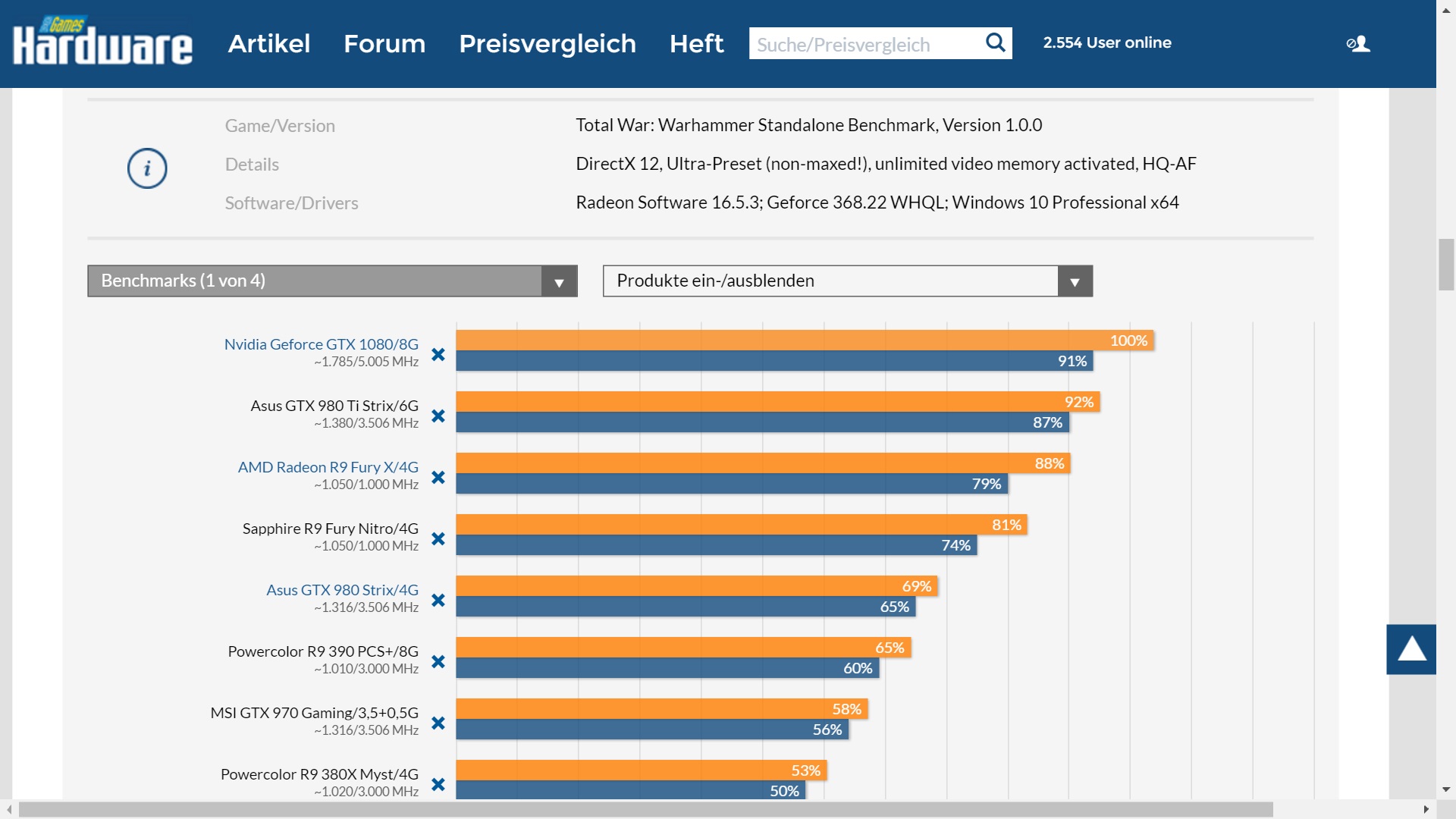 Камрад, отрыв на 5% разогнанной 980 Ти от Фурии Х по твоей ссылке совсем не впечатлил. А в ROTTR большие сомнения в "честности" кода для AMD. Что касается Total War: Warhamner, то хорошо видно, что никто карты Nvidia не тормозит, хоть игра "красная", все они показывают отличную производительность...