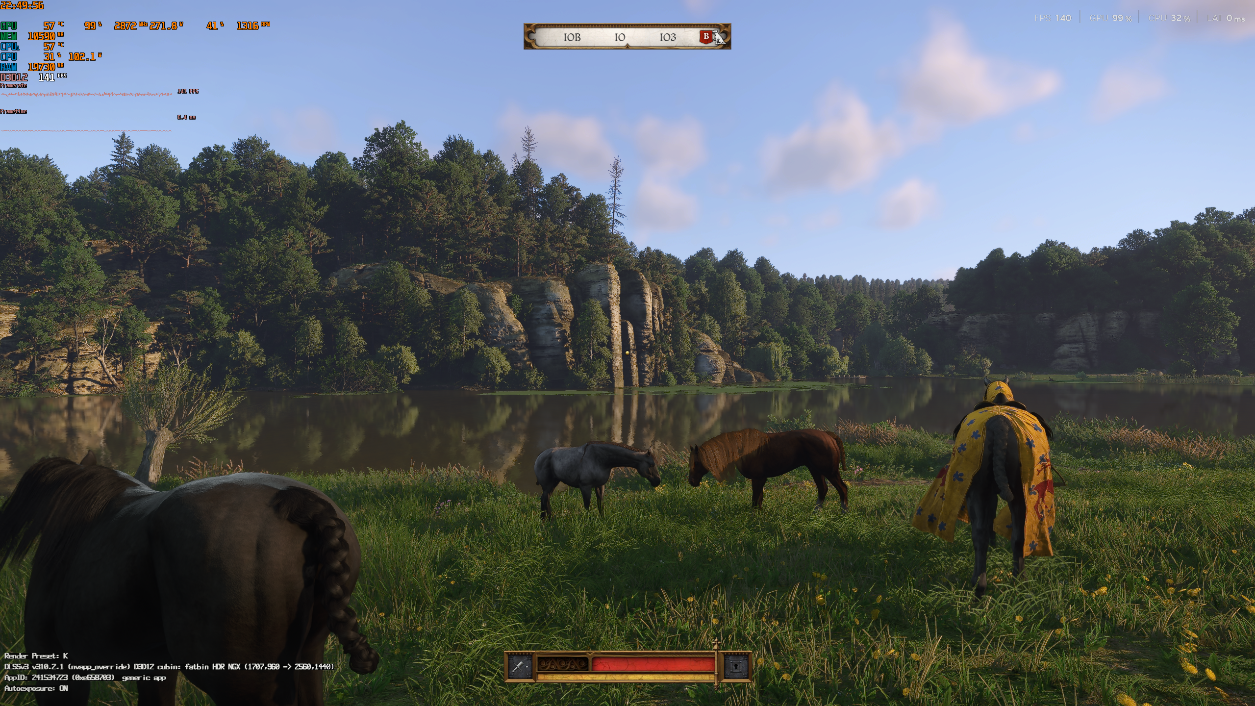 Ультра-настройки • Высокодетализированные текстуры: окружающая среда, строения и одежда персонажей выглядят максимально реалистично. • Расширенные эффекты освещения и теней: динамические тени отображаются чётко даже на большом расстоянии, а освещение учитывает множество источников света. • Густая растительность и дальняя прорисовка: поля, леса и деревни выглядят значительно «живее» и проработаннее, видны детали на горизонте. • Высокое разрешение и стабильный FPS: для плавности требуются мощные процессор и видеокарта, но картинка становится кинематографичной и насыщенной.