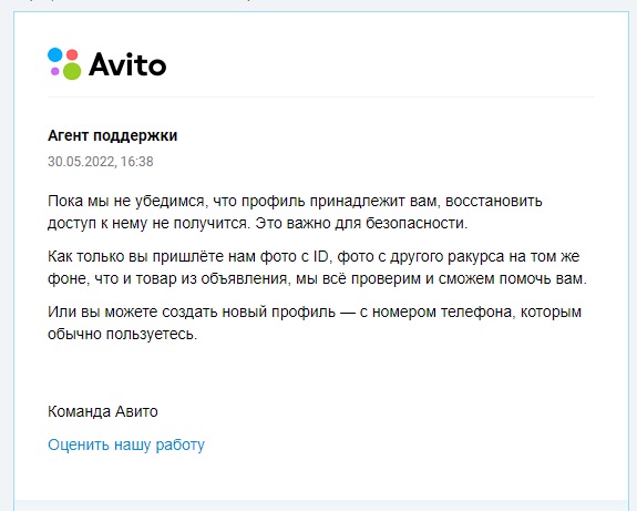 В тех.поддержке авито (или что там у них) сидят трололо-боты, не иначе. Восстановить доступ к своему аккаунту невозможно. (номер телефона сенился) Они требуют ID вашего объявления, и фото той вещи, что Вы там продавали. Фото должны быть на том же фоне как вы их когда-то делали, но с других ракурсов